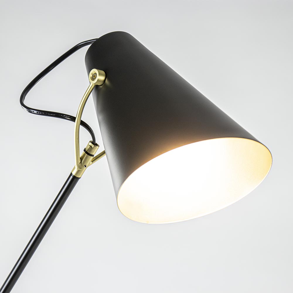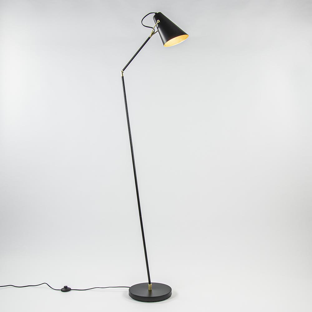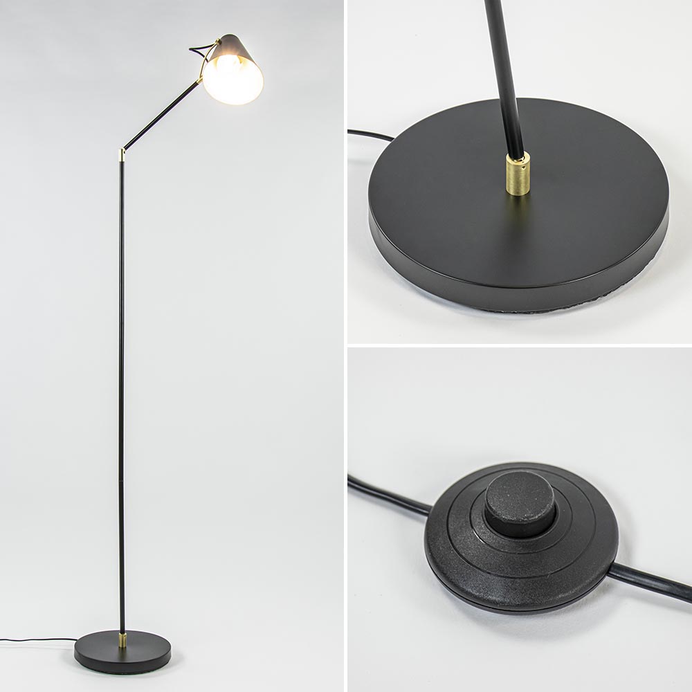 De vloerlamp Barre is een ideale huisgenoot. De zwart met gouden vloerlamp is op diverse plekken te verstellen. Zo kan de arm van het armatuur op twee plekken kantelen en kan de zwarte kap ook nog draaien. Zo kunt u de lamp altijd zo zetten dat hij het beste verlicht. Ideaal wanneer u de lamp naast uw bank gebruikt als leeslamp of voor het uitlichten van een donkere hoek. Het snoer loopt netjes door het armatuur en heeft vanaf de voet nog een lengte van 190 cm, waarbij er een voetschakelaar op 40 cm van de voet zit. Vloerlamp Barre wordt geleverd zonder lichtbron (E27).