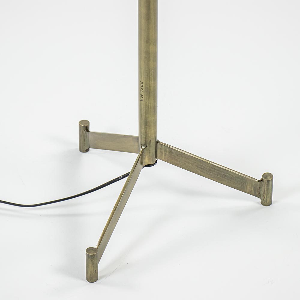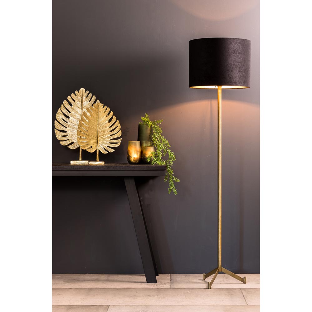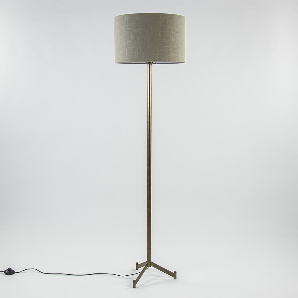 De kracht van eenvoud. Vloerlamp Dennis heeft een minimalistisch design maar is aan de onderzijde net even afgewerkt met een kleine driepoot. Het armatuur zorgt ervoor dat de aandacht veelal naar de kap trekt, maar samen toch een mooi geheel vormen. Het armatuur is volledig van metaal en uitgevoerd in het brons. Vloerlamp Dennis heeft een E27 fitting en wordt geleverd zonder kap en zonder lichtbron. De bronzen vloerlamp is voorzien van een zwart snoer van 210 cm, met een voetschakelaar op 90 cm van de lamp.