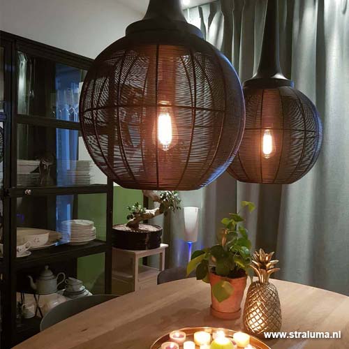 Ondanks zijn grote is deze draad-hanglamp een elegante lamp. Hij is er ook een maatje groter.