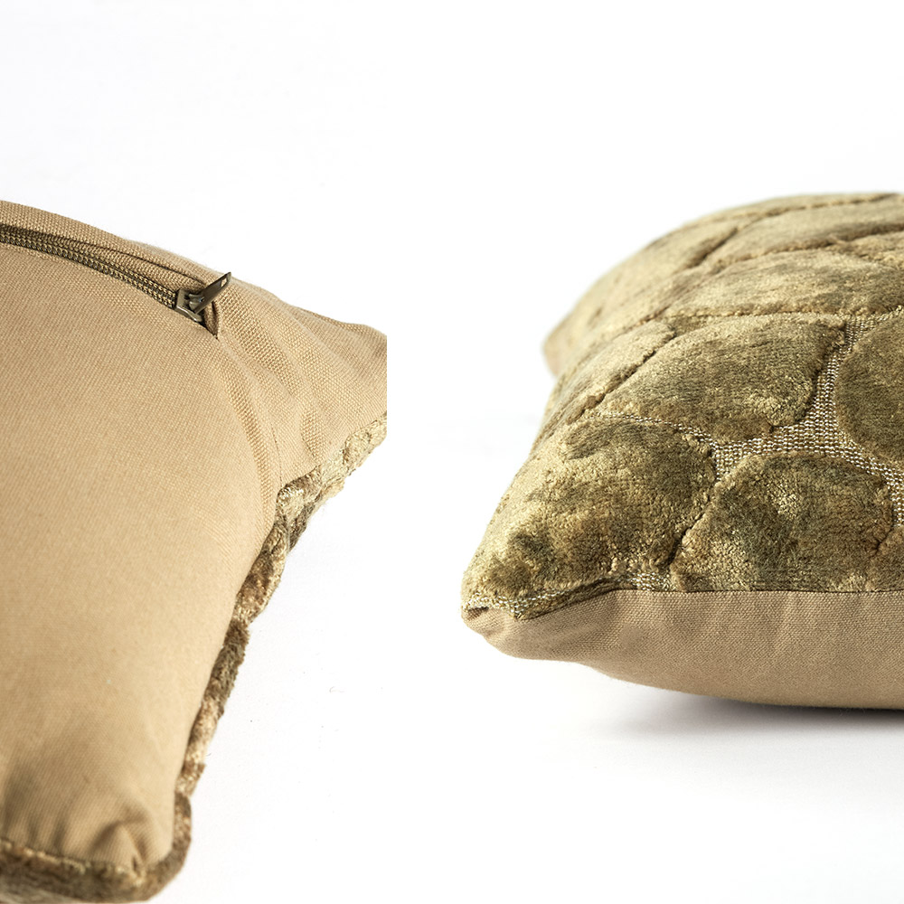 Het Zirafi-kussen in groen brengt een frisse, levendige touch in je interieur. De rijke kleur en het subtiele dessin zorgen voor een stijlvolle uitstraling die perfect combineert met zowel neutrale als warme tinten. Ideaal om extra diepte en karakter toe te voegen aan je bank of fauteuil.