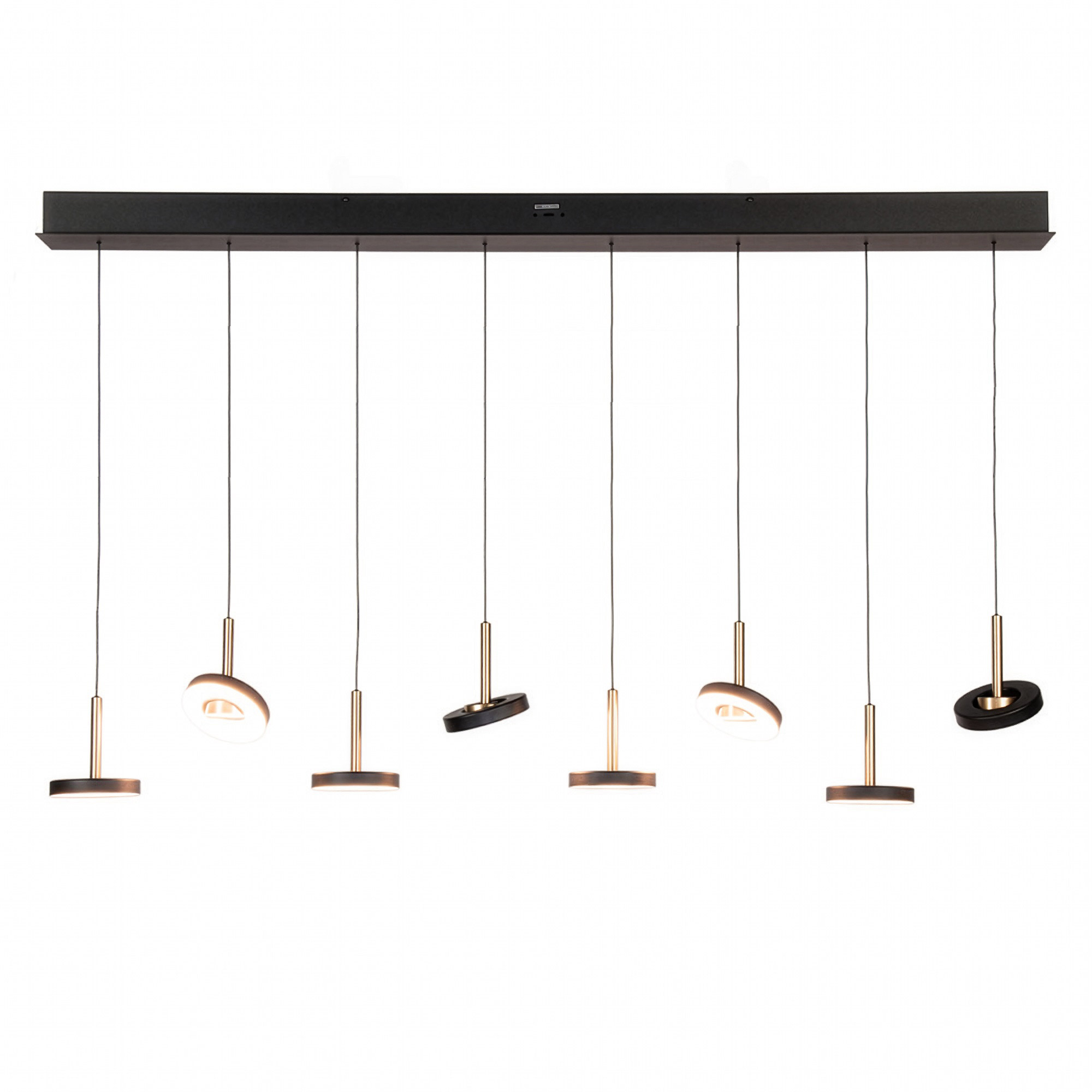 • Luxe uitstraling door de combinatie van mokka en zwart • Moderne, strakke vormgeving over de volle lengte van 150 cm • Geïntegreerde LED voor duurzaam en onderhoudsvrij gebruik • Perfect boven langere eettafels en kookeilanden • Rustige, gelijkmatige lichtverdeling door acht LED-segmenten
