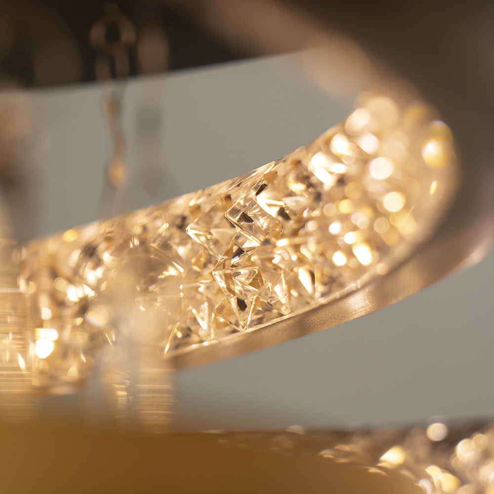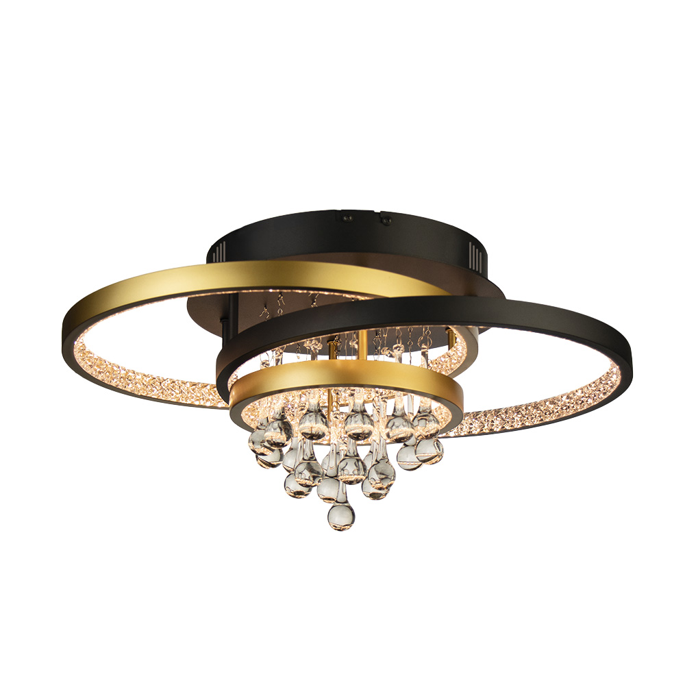 Deze luxe plafonniere brengt moderniteit en klassiek samen. De drie LED geïntergreerde ringen zijn op speelse wijzen verdeeld en voorzien van een crystal look aan de binnenkant. In het midden van de ringen hangen een aantal glazen druppels die de crystal look prachtig ondersteunen. Samen creëren zij een lamp die mooi tot zijn recht komt in zowel een moderne als klassieke woonstijl.