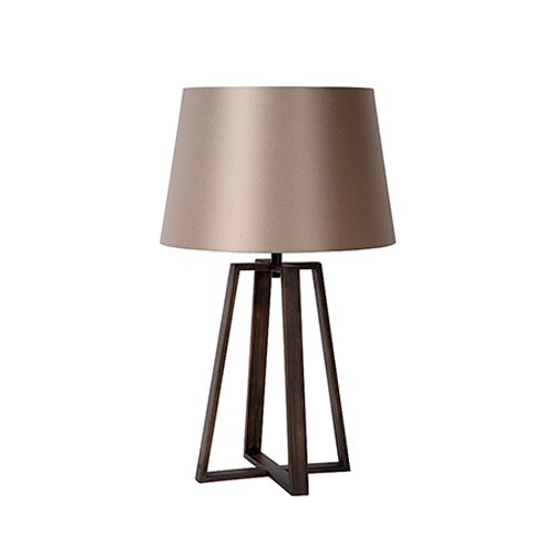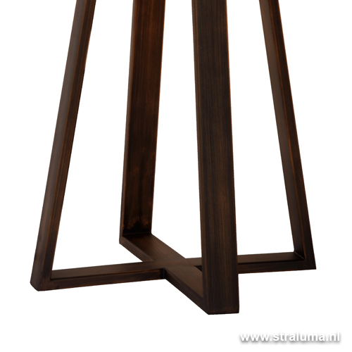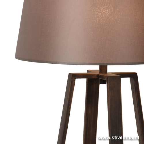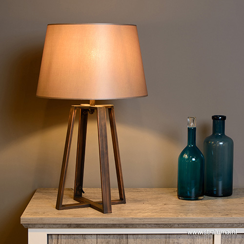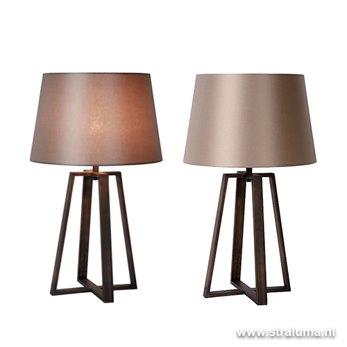 Rustiek, landelijk en een tikkie stoer is deze tafellamp. Stijlvol en creatief zijn de woorden die van toepassing zijn op deze luxe tafellamp. Uitstekend gecombineerd met een luxe kap van glimmende stof in een beetje goud/taupe kleur. De foto’s geven de kleur goed weer. Wanneer de tafellamp brand geeft de kap een mooie warme sfeer. De metalen voet heeft een roestbruine kleur waardoor deze prima past in het landelijke cottage gevoel. Het snoer is deels weggewerkt in één van de pootjes van de voet en komt er aan de onderzijde van het pootje weer uit, zo is er geen loshangend snoer.