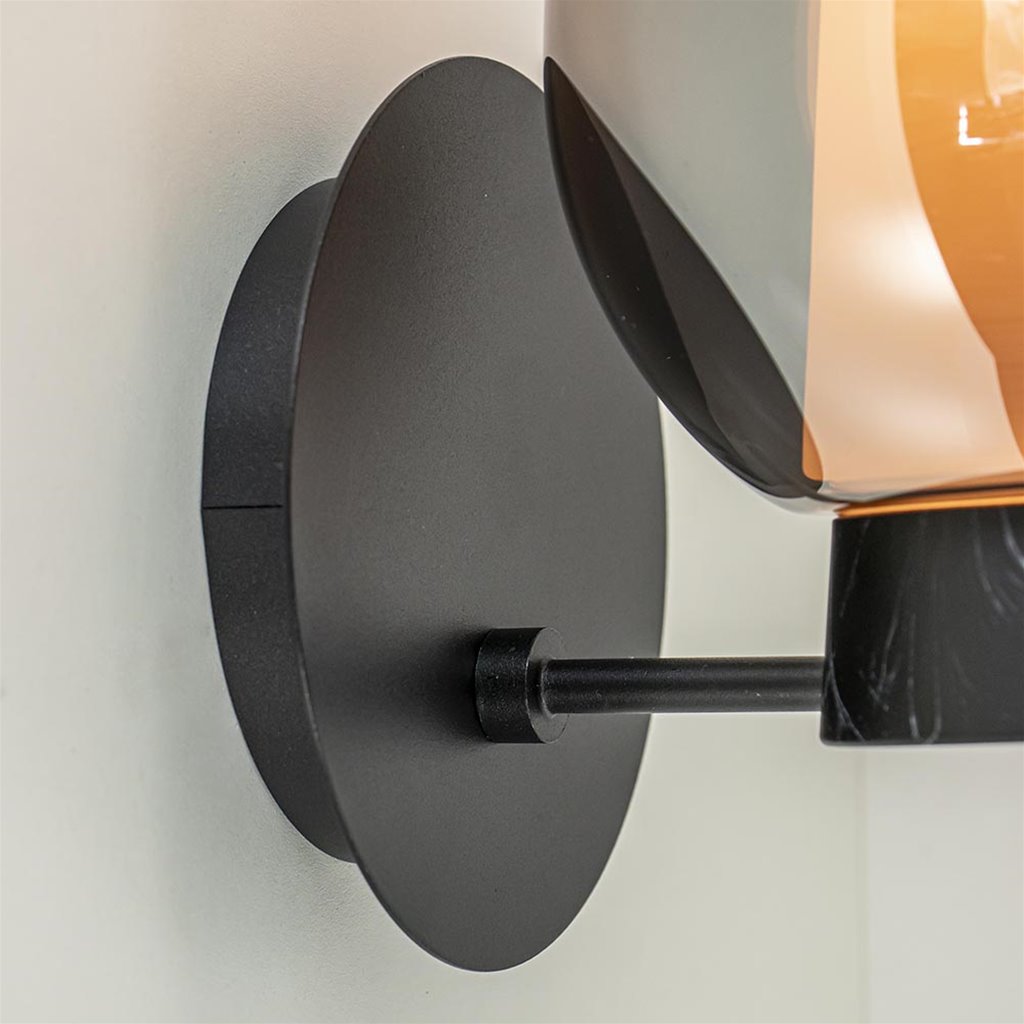 Beschrijving Wandlamp Nora zwart marmer smoke glas