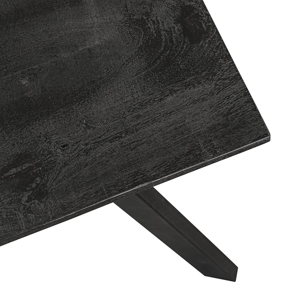 Ideaal voor in een kleinere woning. Deze tafel heeft een afmeting van 140 x 80 cm en is voorzien van een mango houten blad. Deze is uitgevoerd in het zwart voor een chique en stoere look. Het zwart is doorgezet in de metalen poten voor een mooi geheel. De eettafel heeft een blad met een dikte van 2,5 cm. De zwarte eettafel biedt ruimte voor 4 stoelen.