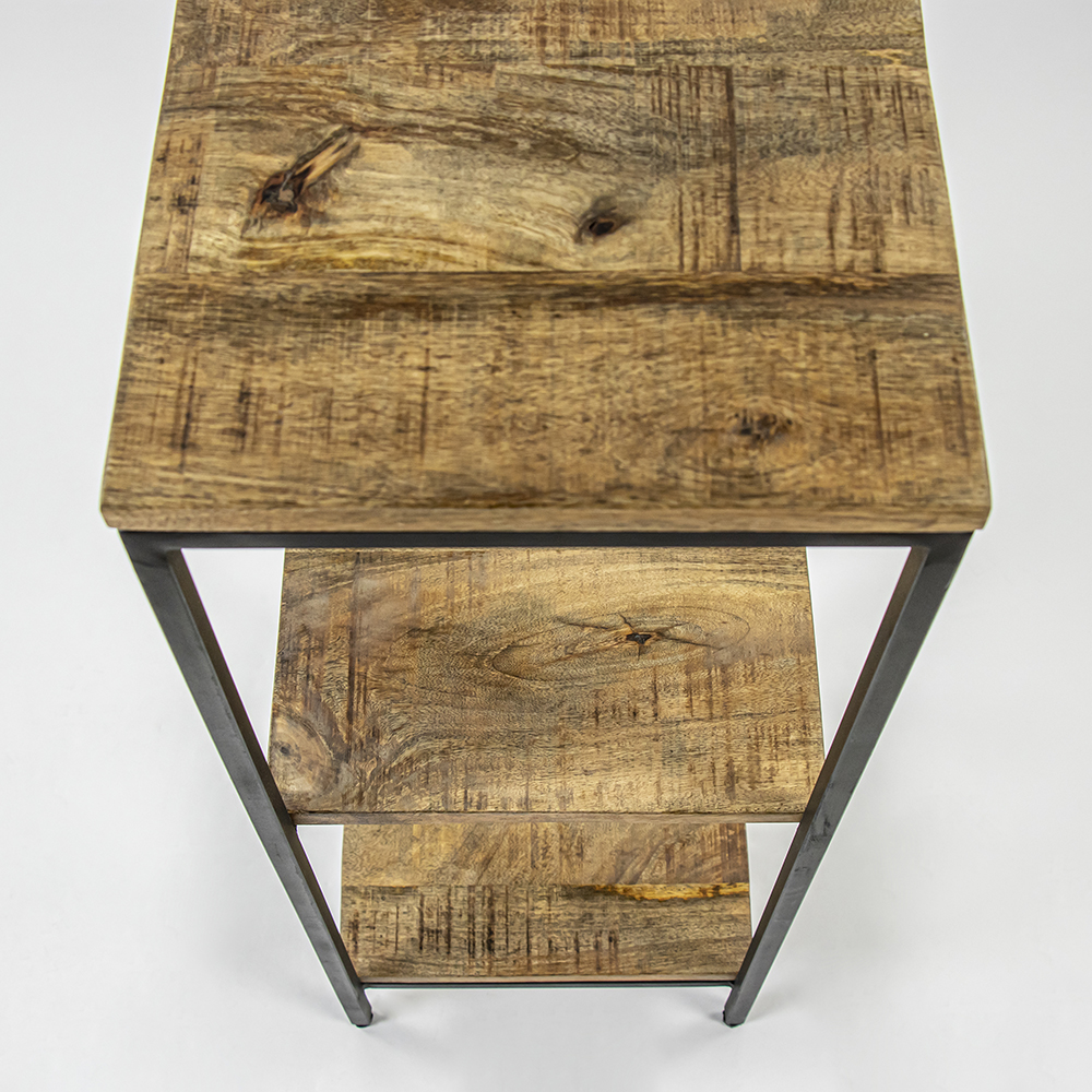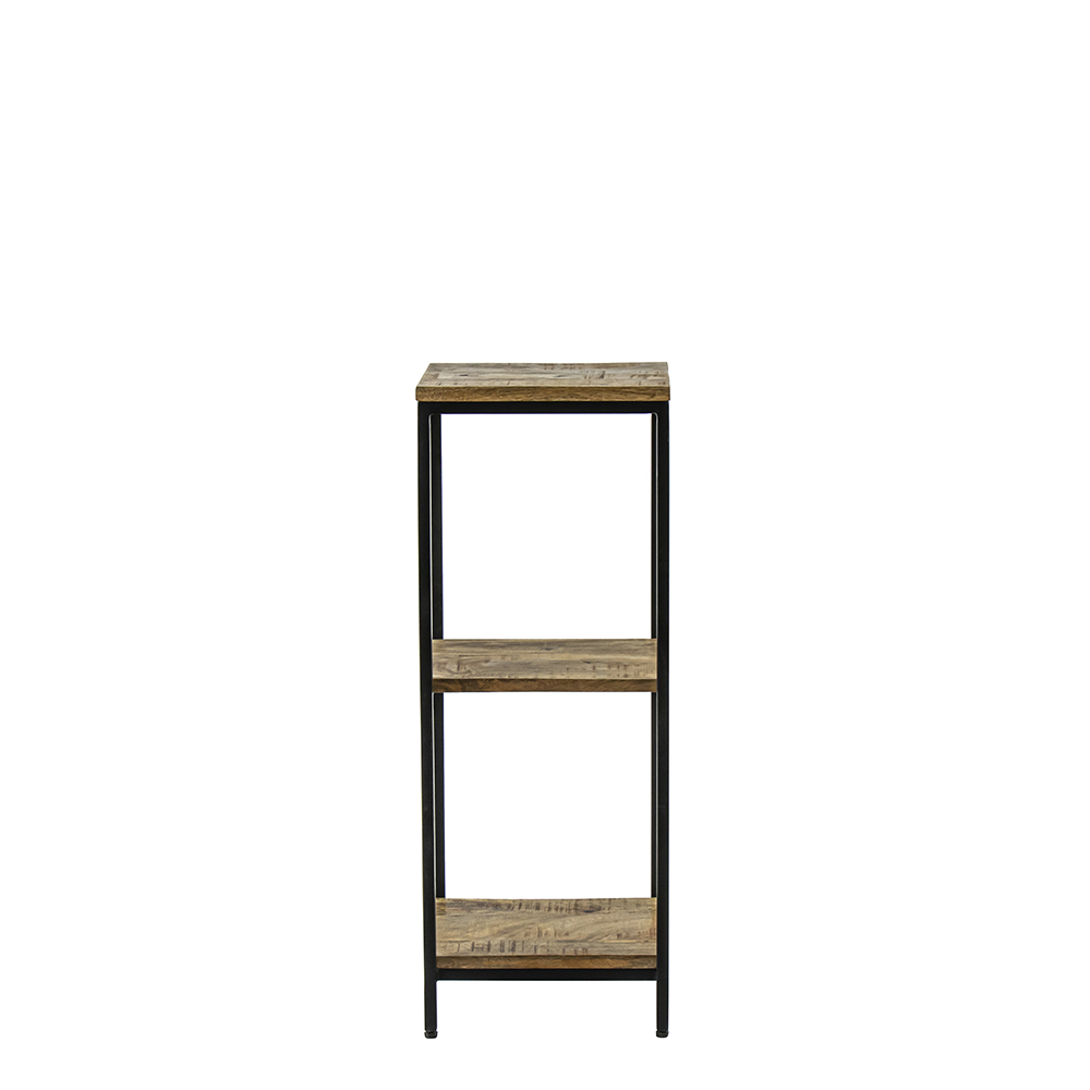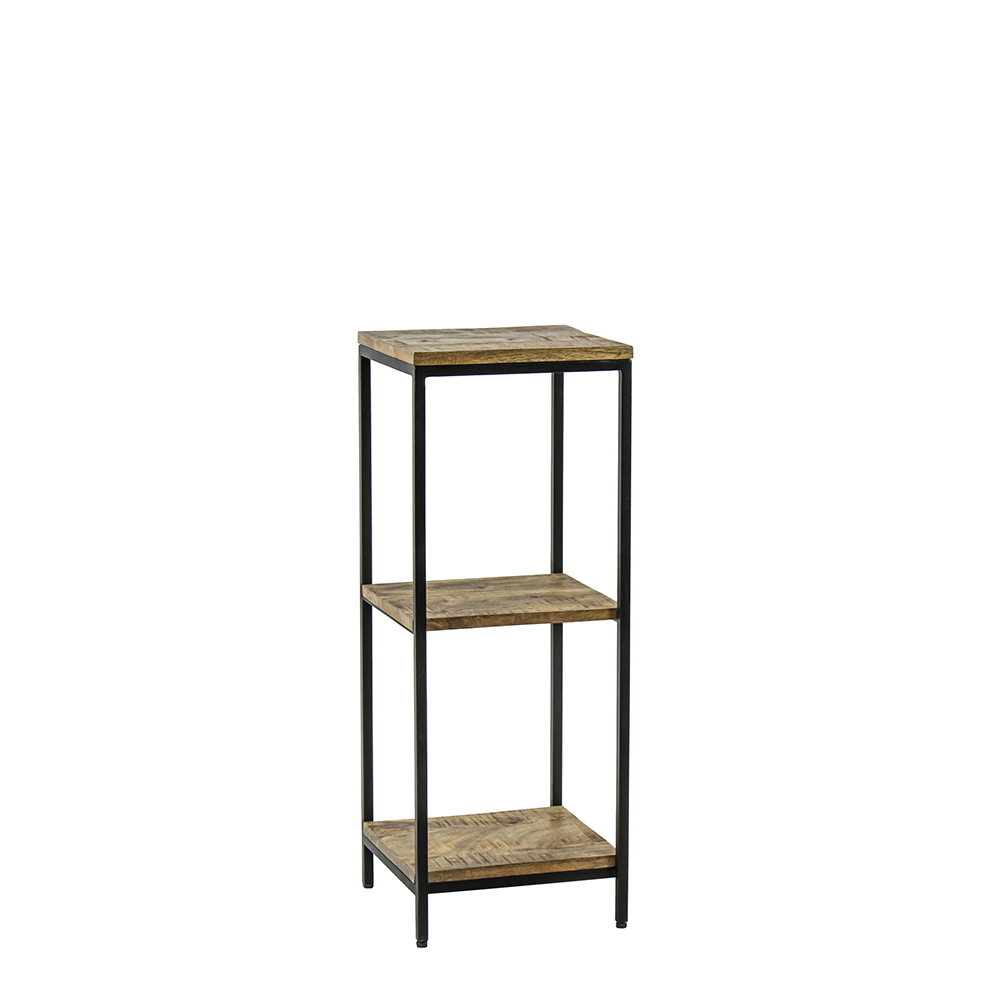 Dit kastje is een leuke toevoeging aan het interieur. Het vierkante kastje bestaat uit een zwart metalen frame met mango houten planken. Deze combinatie geeft het kastje een stoere en robuuste look die mooi is toe te passen in diverse woonstijlen. Het kastje is in 3 maten verkrijgbaar en zijn ook leuk als set te combineren.