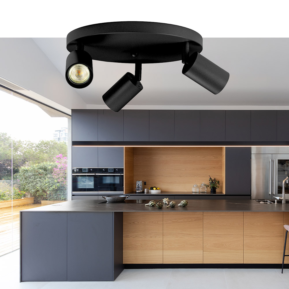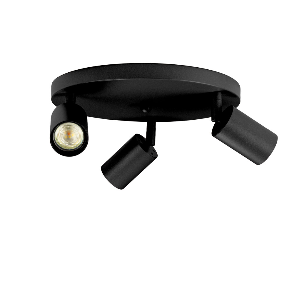 • Ronde plafondspot Ø30 cm – strak en compact design • 3 verstelbare en kantelbare spots voor gericht licht • Tijdloze zwarte afwerking – past in elk interieur • GU10 fitting (lichtbronnen exclusief) • Ideaal voor hal, keuken, slaapkamer of werkkamer