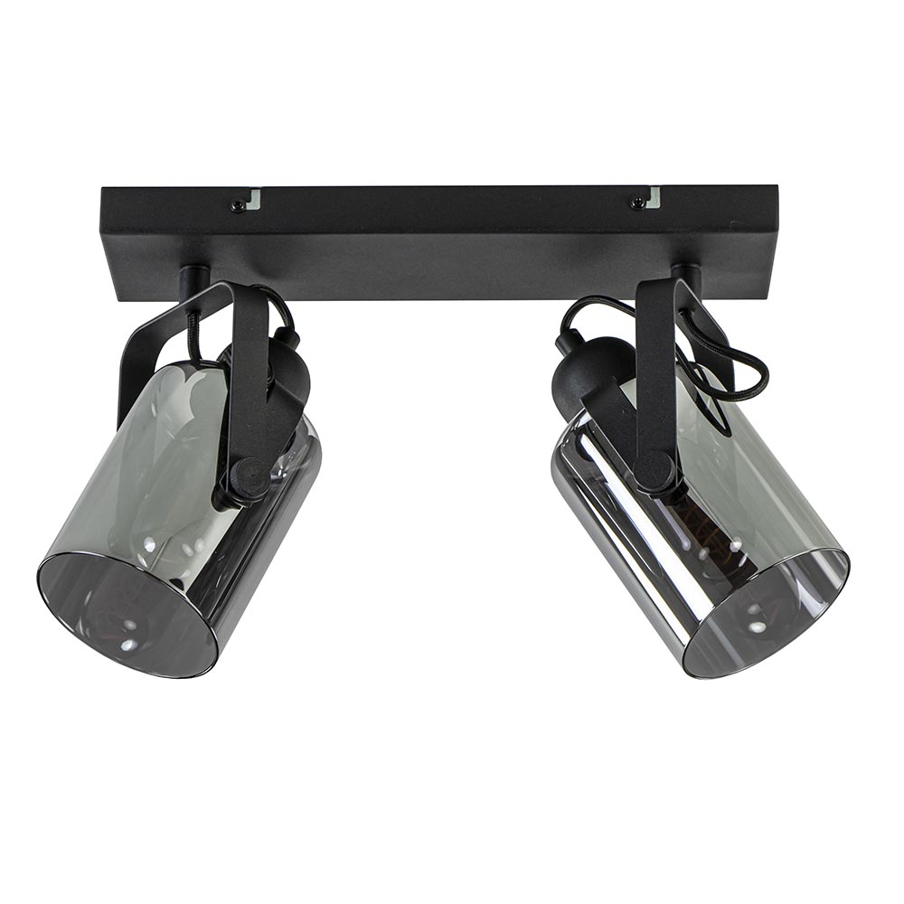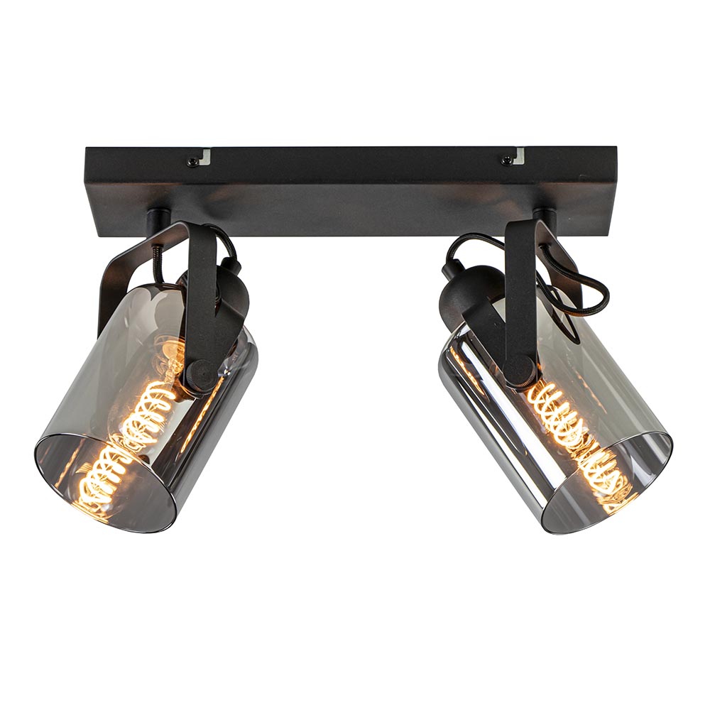 / Lampen / Plafondlampen / Mat zwarte 2-lichts plafondlamp met smoke glas