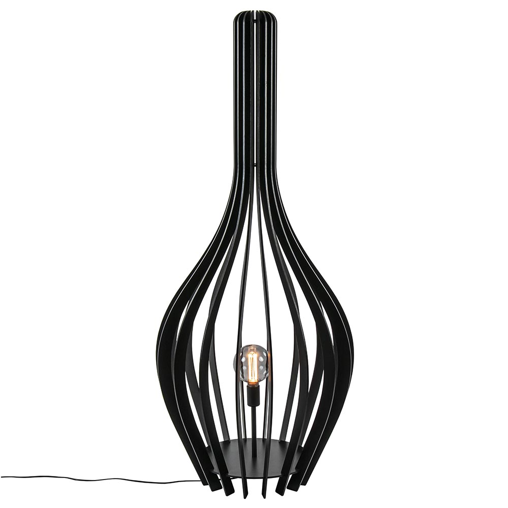 / Lampen / Vloerlampen / Mat zwarte houten vloerlamp kegel groot