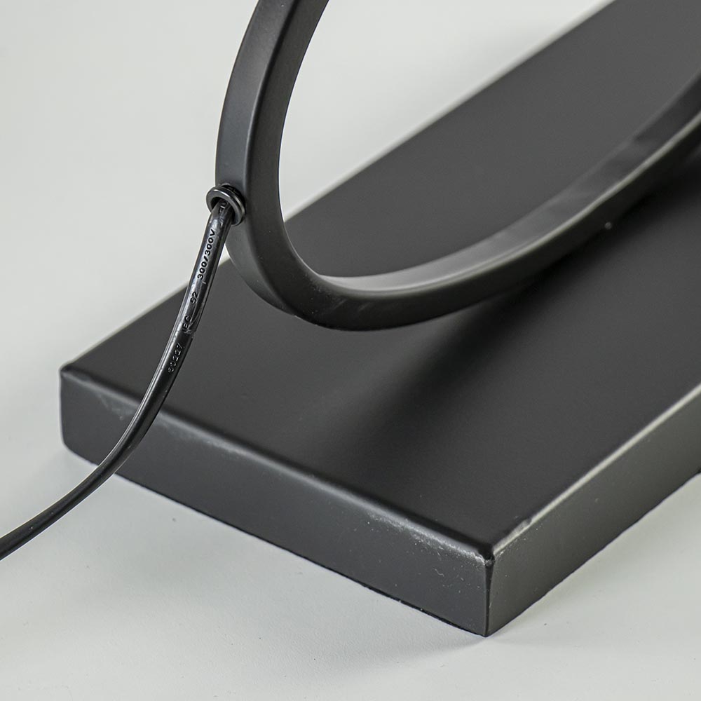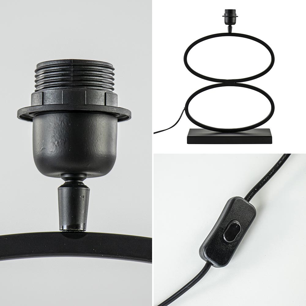 Deze stijlvolle tafellamp is in de vorm van een 8. Het mat zwarte metaal geeft de tafellamp een moderne look en hierdoor is de tafellamp te combineren in diverse woonstijlen. De tafellamp past perfect op een dressoir, kast of bijzettafel. De voet is te combineren met verschillende kleuren kap. De tafellamp heeft een snoer van 130 CM met de schakelaar op 35 CM van het armatuur. De lamp wordt exclusief kap geleverd.
