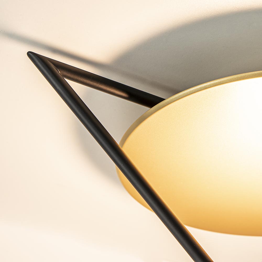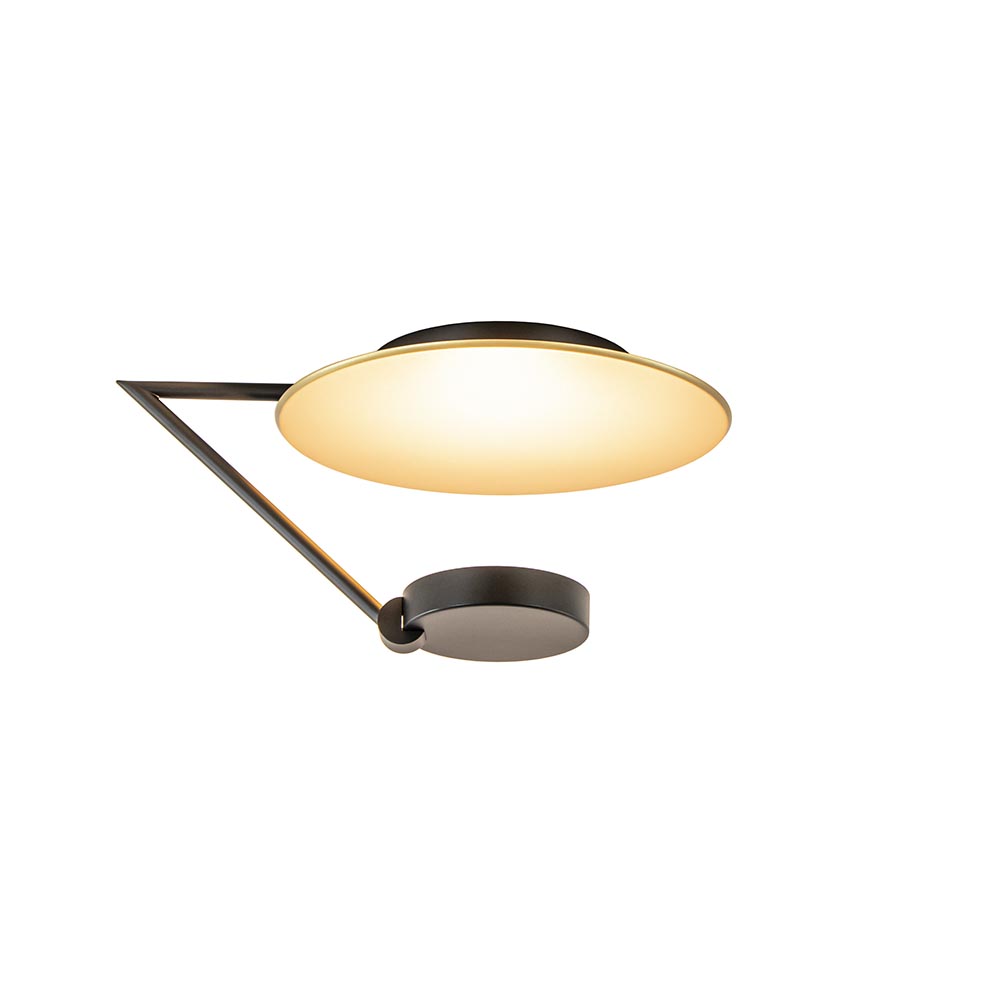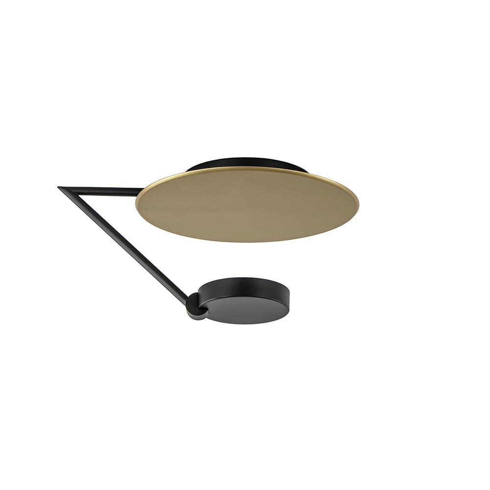 Deze design plafondlamp is een sfeermaker in de ruimte. De plafondlamp is voorzien van geïntegreerd LED en geeft indirecte verlichting. Hierdoor ontstaat er een sfeervol effect. Het licht wordt weerkaatst op de gouden plaat waardoor het ook een warme uitstraling krijgt. Door z’n formaat is de lamp prima geschikt voor een hal of kleine kamer. De LED plafondlamp zwart met goud is dimbaar middels de juiste dimmer (exclusief).
