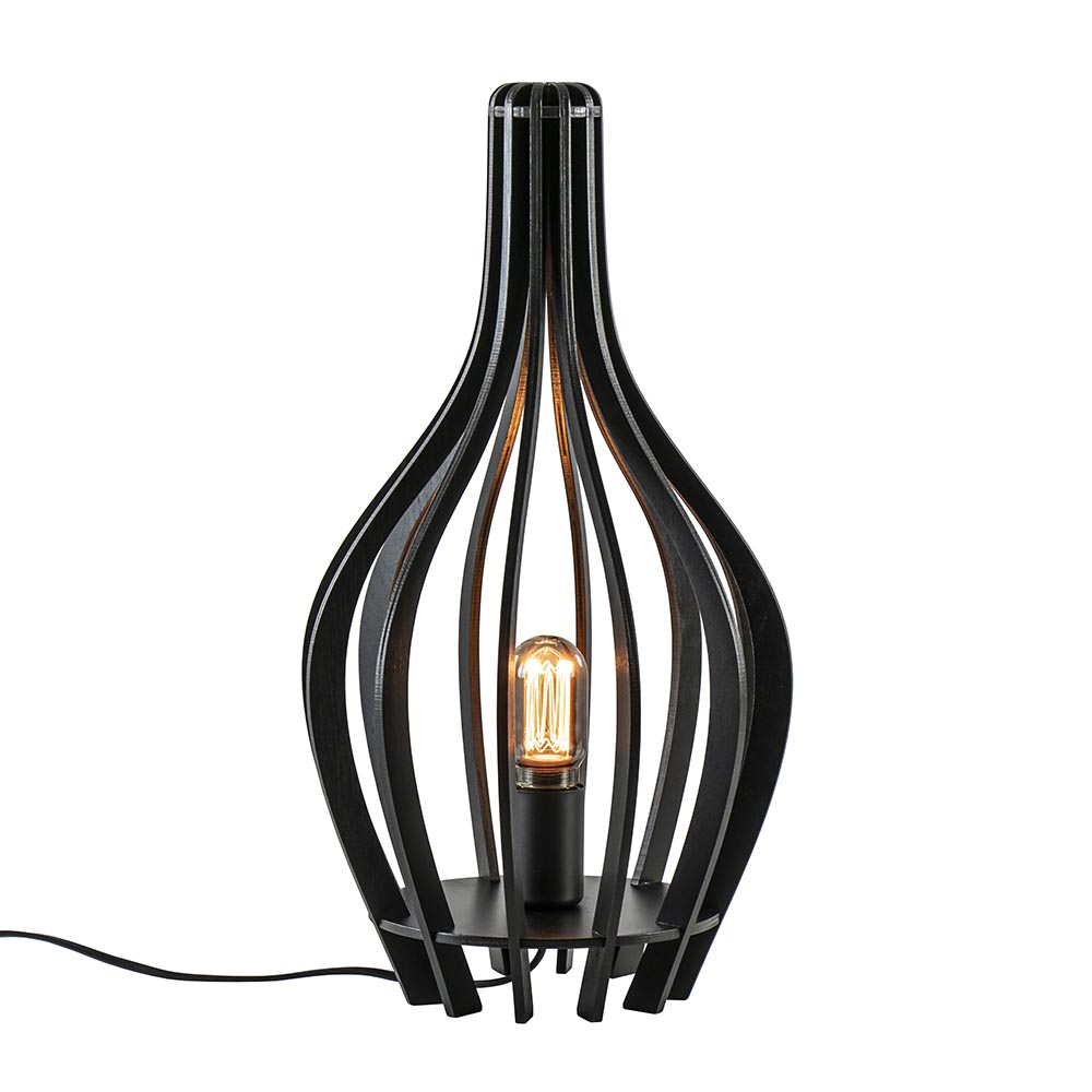 / Lampen / Tafellampen / Mat zwarte tafellamp houten kegel