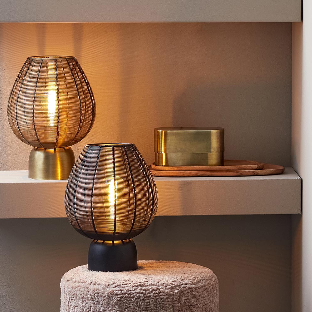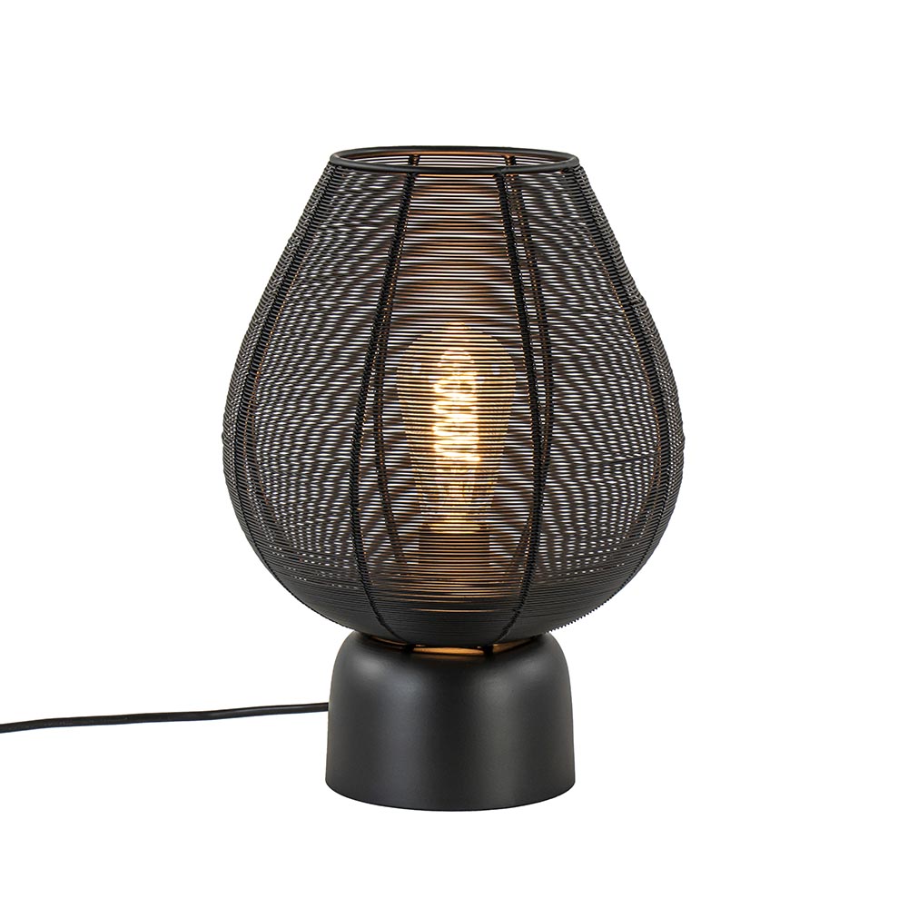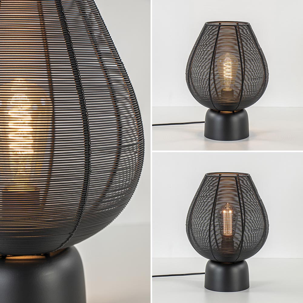 Deze kleine tafellamp Suneko van Light and Living is een fijne toevoeging voor op een dressoir, nachtkastje of bijzettafel. De draadlamp is gemaakt van metaal en uitgevoerd in het mat zwart. Dit geeft de tafellamp een moderne en Scandinavische look. De draadkap is van binnen voorzien van een E27 fitting en wordt geleverd exclusief lichtbron. Het zwarte snoer heeft een lengte van 180 cm, waarbij de knipschakelaar zich op 80 cm van de lamp bevindt.