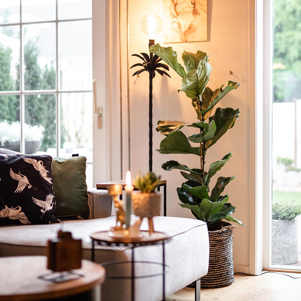 Deze leuke vloerlamp past helemaal bij de trends van nu. De mat zwarte lampvoet Armata is gemaakt in de vorm van een palmboom, inclusief de bladeren van de palm. Boven de bladeren steekt de fitting uit waar de kap op moet worden bevestigd. De palmboom vloerlamp matcht perfect bij de botanische trends en combineert mooi bij diverse kleuren. Zo kunt u met diverse kappen een mooie combinatie maken. De kap en de lichtbron worden niet meegeleverd. De zwarte palm lampvoet van Light and Living is voorzien van een zwart snoer van 195 cm, met een voetschakelaar op 40 cm van de voet.