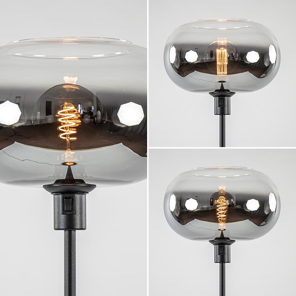 Deze stijlvolle vloerlamp maakt het interieur helemaal af. De lamp is trendy, chique en een tikkeltje retro ineen. Het slanke armatuur zorgt dat alle aandacht van de lamp naar de kap gaat. Dit is een glazen kap van 31 cm doorsnede en uitgevoerd in het smoke. Wat de kap extra bijzonder maakt is dat deze is voorzien van een gradient, oftewel verloop. Het glas verloopt van helder naar smoke wat een luxe uitstraling geeft. Fijn extraatje is de schakelaar op het armatuur. Deze bevindt zich net onder de glazen kap. Zo hoeft u niet te zoeken naar een schakelaar in het snoer.