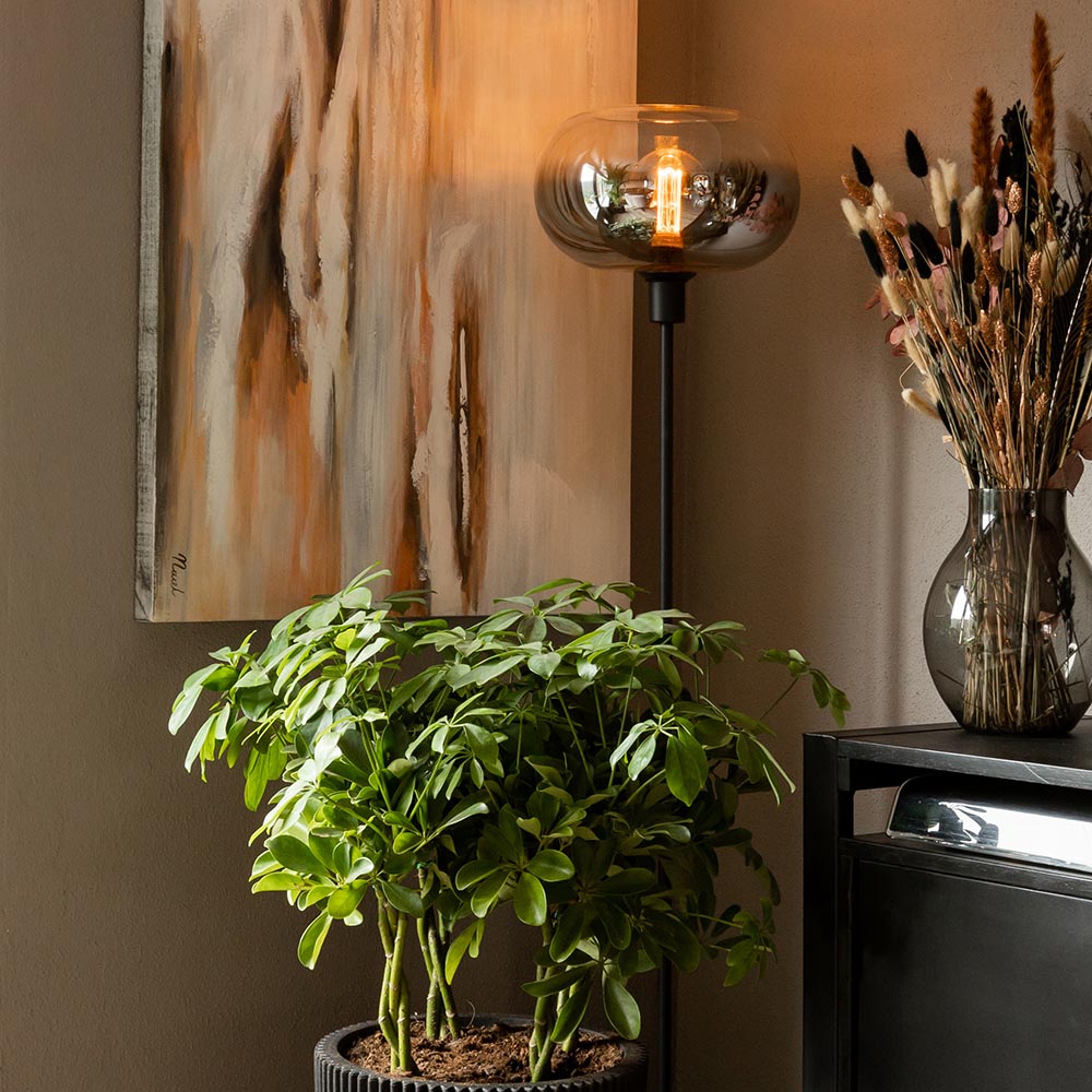 Homepagina / Lampen / Vloerlampen / Mat zwarte vloerlamp met smoke glas gradient