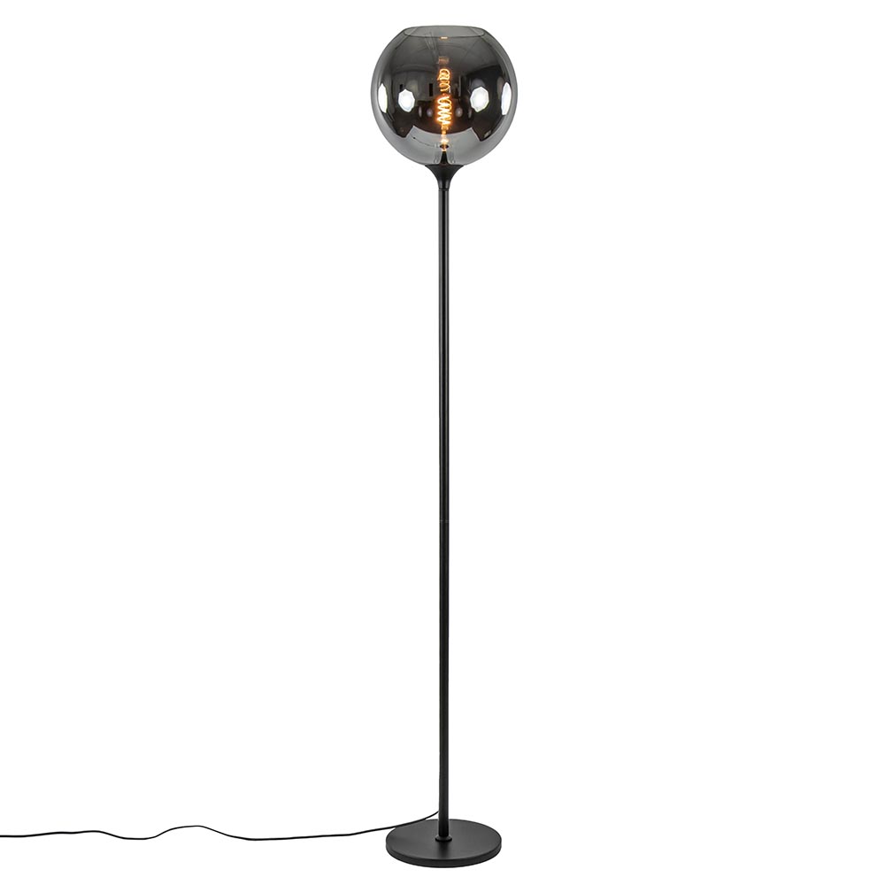 / Lampen / Vloerlampen / Mat zwarte vloerlamp met smoke/titanium glazen kap