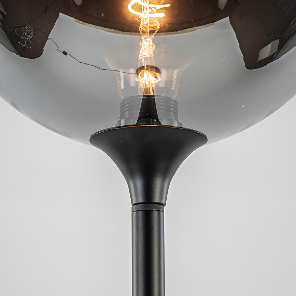 Een prachtige toevoeging voor het interieur met een stijlvolle luxe uitstraling. De mat zwarte vloerlamp is een echte musthave en valt helemaal binnen de huidige trends. De staande lamp heeft een mat zwart armatuur dat een smoke glazen kap van 30 cm doorsnede ondersteund. Het donkere glas heeft een titanium coating waardoor er een spiegelend effect ontstaat. Dit in combinatie met het matte zwart zorgt voor de luxe uitstraling in de lamp. De mat zwarte vloerlamp is voorzien van een snoer met een lengte van 255 cm, met een schakelaar op 110 cm van de voet. Een prachtige lamp die mooi matcht in diverse woonstijlen als luxe, chique en trendy.
