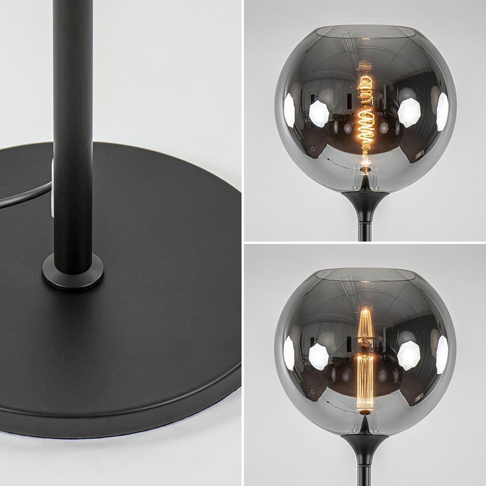 – hoogte: 171 cm – kap: Ø30 cm – voet: Ø25×2 cm – metaal, mat zwart – smoke/titanium glas – zwart snoer: 255 cm – exclusief lichtbron (E27)
