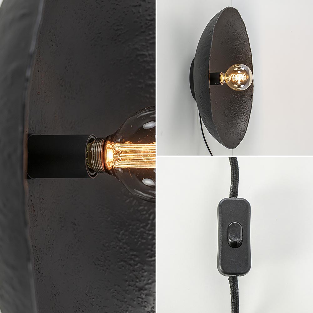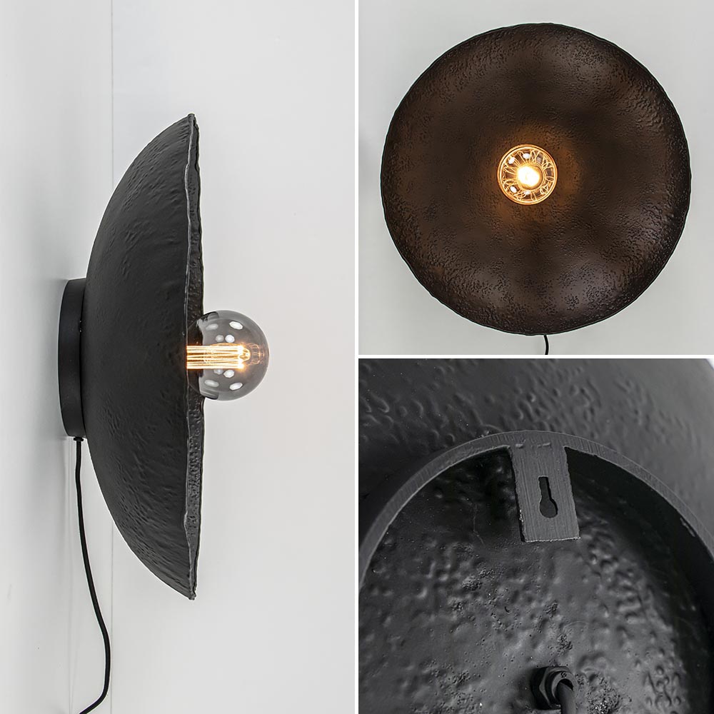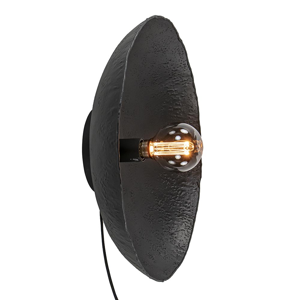 – afm: Ø50×12 cm – metaal – zwart – inclusief zwart snoer: 180 cm – exclusief lichtbron (E27)