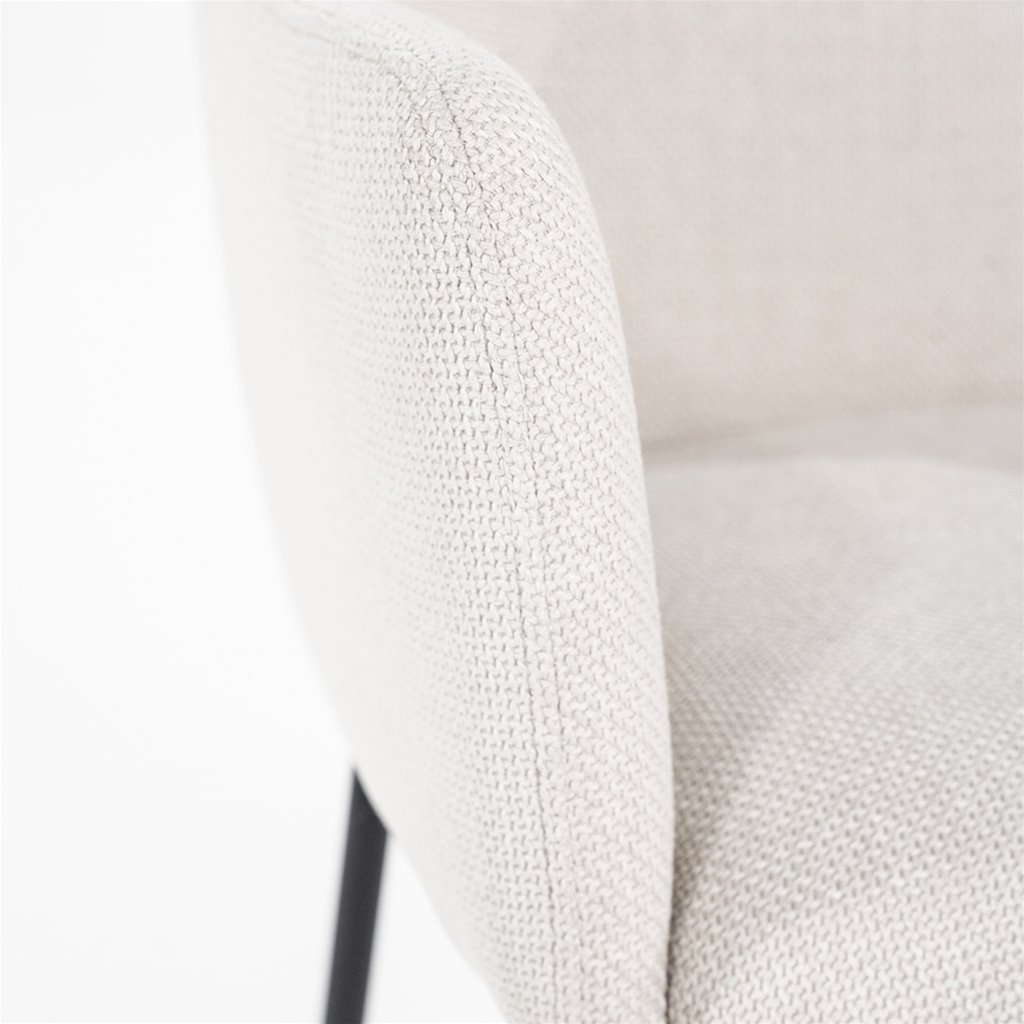 De stof heeft een fraaie geweven structuur, wat zorgt voor een luxueuze en tijdloze uitstraling. De slanke, zwart metalen poten voegen een eigentijds contrast toe en versterken de minimalistische look. Bovendien biedt de stevige constructie stabiliteit en duurzaamheid, waardoor je jarenlang plezier hebt van deze stoel. Ideaal voor wie op zoek is naar een elegante, comfortabele en stijlvolle aanvulling op een hedendaagse eethoek.