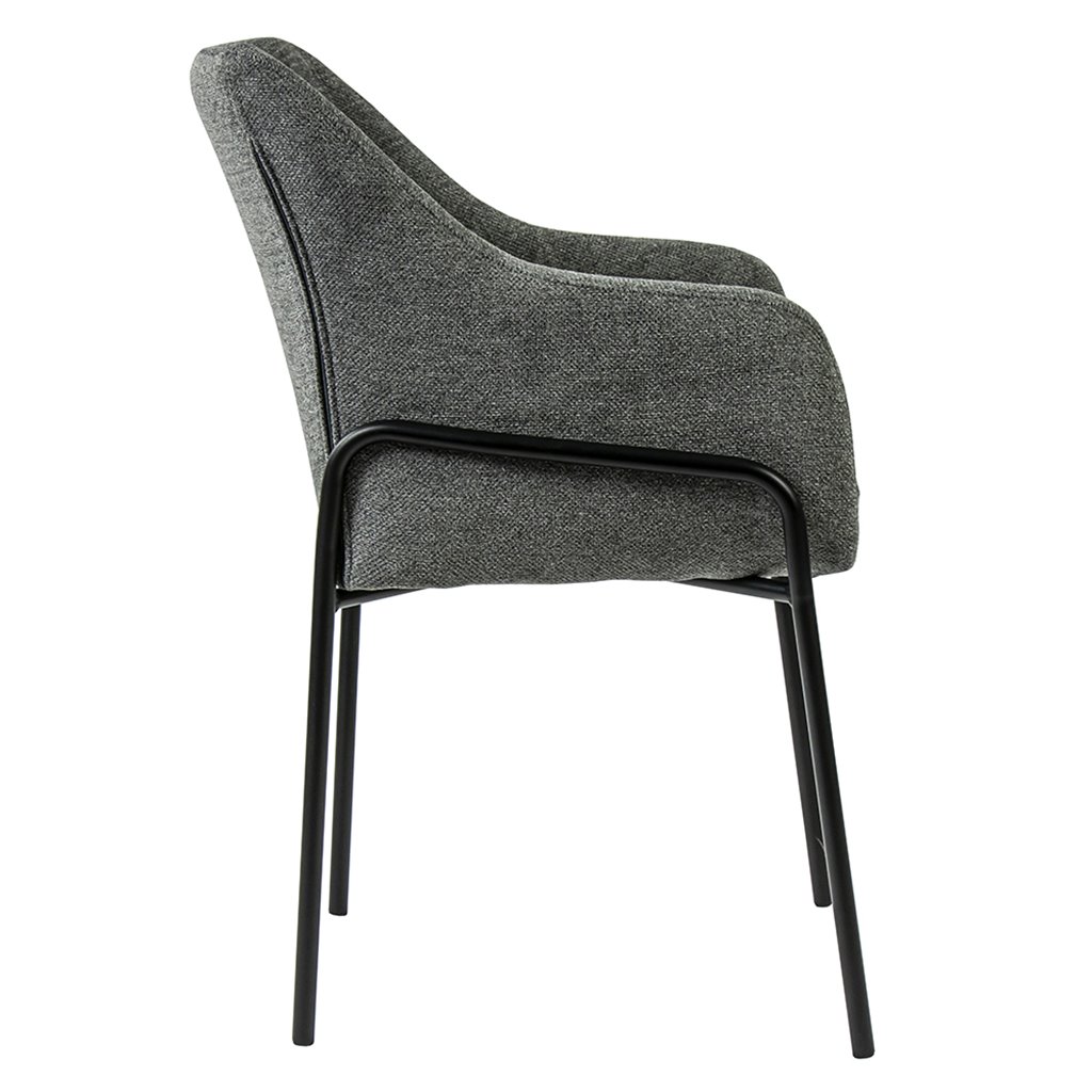 Beschrijving Donker grijze eetkamerstoel met metalen pootjes