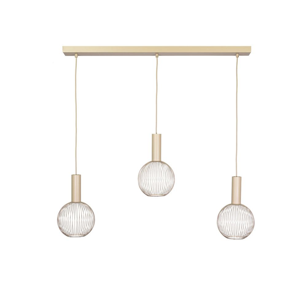 Specificaties: • Kleur: Beige / zand • Plafondbevestiging: H 3 cm × L 90 cm × B 8,5 cm • Pendel/fitting: H 13 cm × Ø 4,5 cm • Totale hoogte lamp: Max. 135 cm (verstelbaar) • Totale lengte: Ca. 100 cm (balk + lichtbronnen) • Totale breedte: Ca. 16,5 cm (balk + lichtbronnen) • Materiaal: Metaal • Fitting: 3 × E27 • Lichtbronnen: Niet inbegrepen (lichtbronnen op de foto zijn ter illustratie)