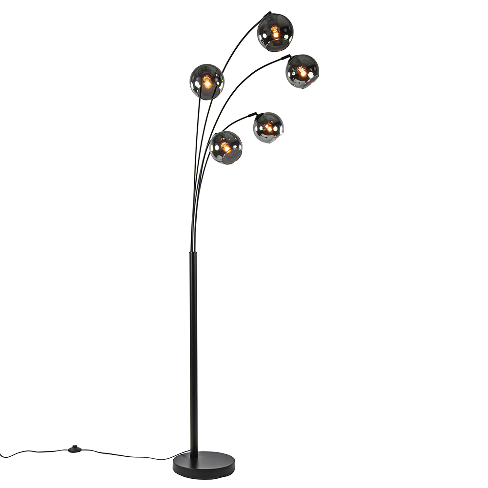 / Lampen / Booglampen / Moderne 5-lichts booglamp met smoke glazen bollen