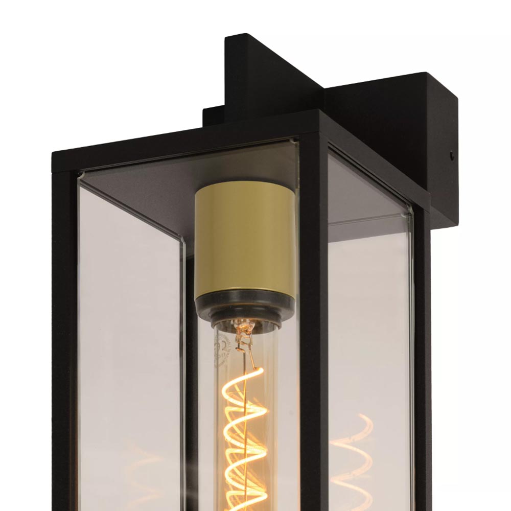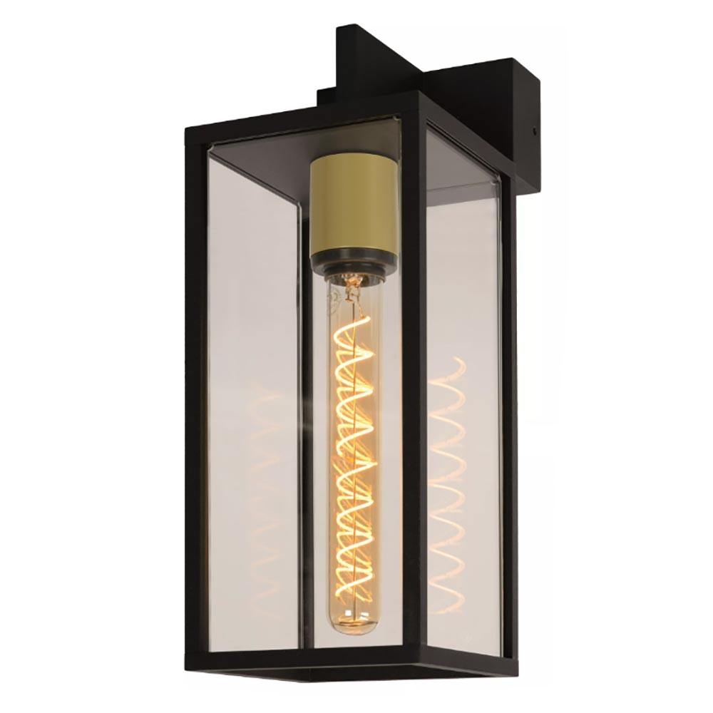 Modern met een landelijke twist. De buitenlamp is een verrijking voor de tuin en het huis. Strak van design en toch tijdloos en bij iedere woning toe te passen. De buiten wandlamp is gemaakt van metaal en uitgevoerd in het mat zwart. Leuk detail is de gouden fitting binnenin de lamp. De buitenlamp is verder afgewerkt met helder glas zodat deze goed is afgesloten. Hierdoor is de lamp IP54 goedgekeurd. De buitenlamp wordt geleverd exclusief lichtbron.