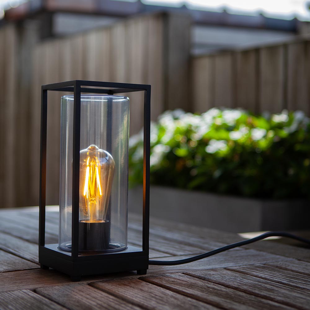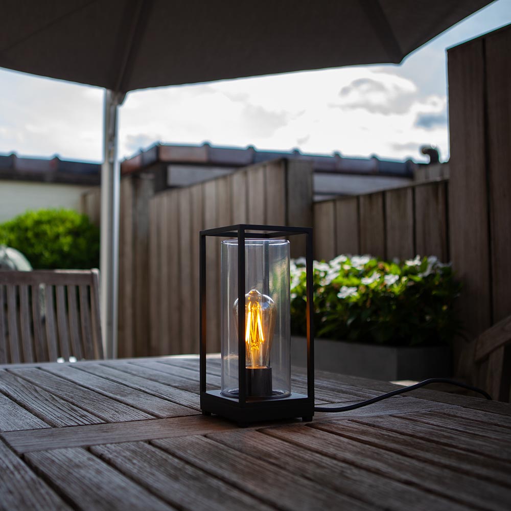 Met deze ideale buitenlamp kunt u nu ook de tafel in de tuin verlichten. Ideaal bij een gezellige borrel of een heerlijk avondje relaxen. De buitenlamp is gemaakt van aluminium en uitgevoerd in het mat zwart. Binnenin het frame is de lamp afgesloten met een helder glazen kap. Door de E27 fitting kunt u zelf de lichtbron bepalen. Zo kunt u ook voor smart lampen kiezen. De buitenlamp tafel is voorzien van een zwart snoer met een lengte van 150 cm. Stroomvoorziening is dan ook wel nodig in de tuin of op het balkon.