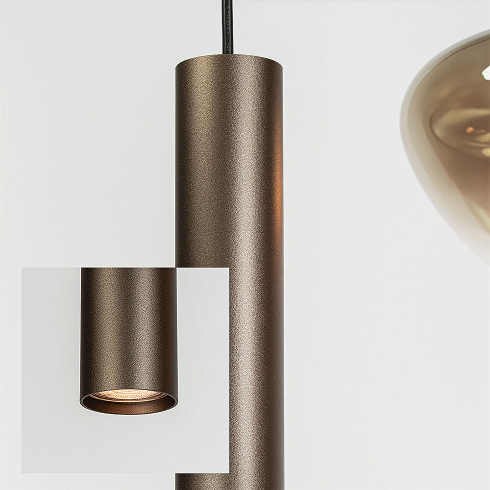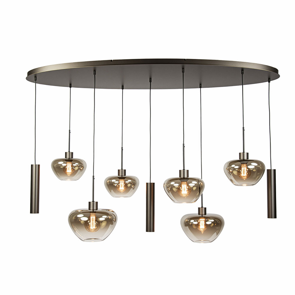 De lamp is uitgerust met 6x E27 en 3x GU10 fittingen, waardoor je volop kunt variëren met lichtbronnen naar keuze (niet inbegrepen). De glazen kappen verspreiden een warm en sfeervol licht, terwijl de cilinders zorgen voor een meer gericht accentlicht. Dankzij de in hoogte verstelbare snoeren (max. 180 cm) bepaal je zelf de ideale compositie boven jouw tafel.