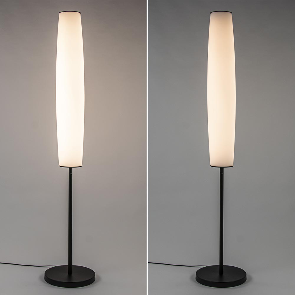 Deze luxe vloerlamp is een mooie toevoeging aan het interieur. De vloerlamp heeft een zwart armatuur dat is gecombineerd met een cilindervormige opaal glazen kap. Het opale glas zorgt ervoor dat u niet in de lichtbron kunt kijken maar dat deze wel voldoende licht opbrengt. De zuil vloerlamp is voorzien van LED en zorgt voor een fijne sfeervolle verlichting. Daarnaast heeft deze moderne vloerlamp ook nog een andere functie, namelijk een dim to warm functie. Dit houdt in dat de lamp kan dimmen in kleurtemperatuur. Deze varieert tussen de 2700 en 2200 Kelvin. Dit werkt gemakkelijk door de dimmer op het armatuur ingedrukt te houden. De design lamp is een mooie eyecatcher die zorgt voor een sfeervolle verlichting.