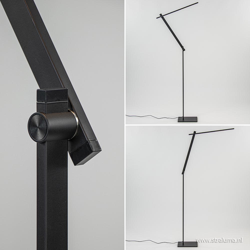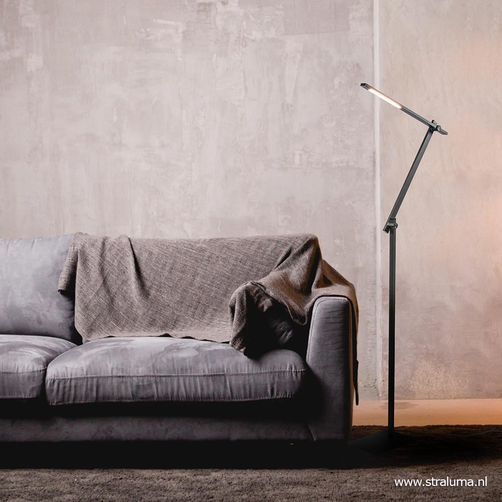 Een zeer functionele design vloerlamp. De zwarte vloerlamp, die tevens perfect kan dienen als leeslamp, is voorzien van LED wat de lamp energiezuinig maakt. Daarnaast is het LED ook dimbaar dmv de touchdimmer op het armatuur. Dit werkt met een 3-standen functie. Dit houdt in dat de lamp per druk op de dimmer een stap verder dimt. Op deze wijze creëert u gemakkelijk en snel de gewenste sfeer. Ideaal wanneer u wilt lezen in uw favoriete stoel of gezellig wilt socializen met vrienden. Naast de dimfunctie heeft de lamp nog een voordeel, het armatuur is op twee plekken te verstellen. Dit is vooral handig wanneer de lamp fungeert als leeslamp, zo hoeft u niet uw stoel te verzetten. Al met al een functionele lamp met een mooi en strak design.