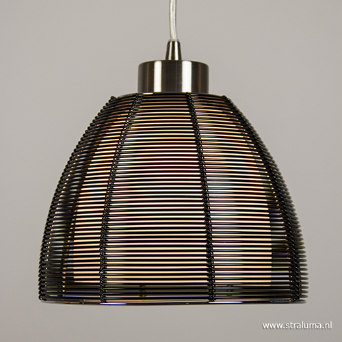 Deze moderne hanglamp is een leuke en mooie toevoeging aan het interieur. Het kapje heeft een strak en modern design en geeft ook nog eens een sfeervolle verlichting, het bestaat namelijk uit een buitenkap van zwart metaaldraad en een binnenkap van wit melkglas die zorgt voor een zachte verlichting. Voordeel van het matglas aan de binnenzijde is dat er ook niet direct in de lichtbron kan worden gekeken. Het kapje is afgewerkt met een aluminium armatuur die door het transparante snoer wordt verbonden met de aluminium ronde plafondbevestiging. Door z’n kleine formaat past de lamp perfect in verschillende kamers als de hal, woonkamer, slaapkamer of zelfs het toilet. Ideaal bij kleine ruimtes, maar ook sfeervol bij de bank of boven een bijzettafel.