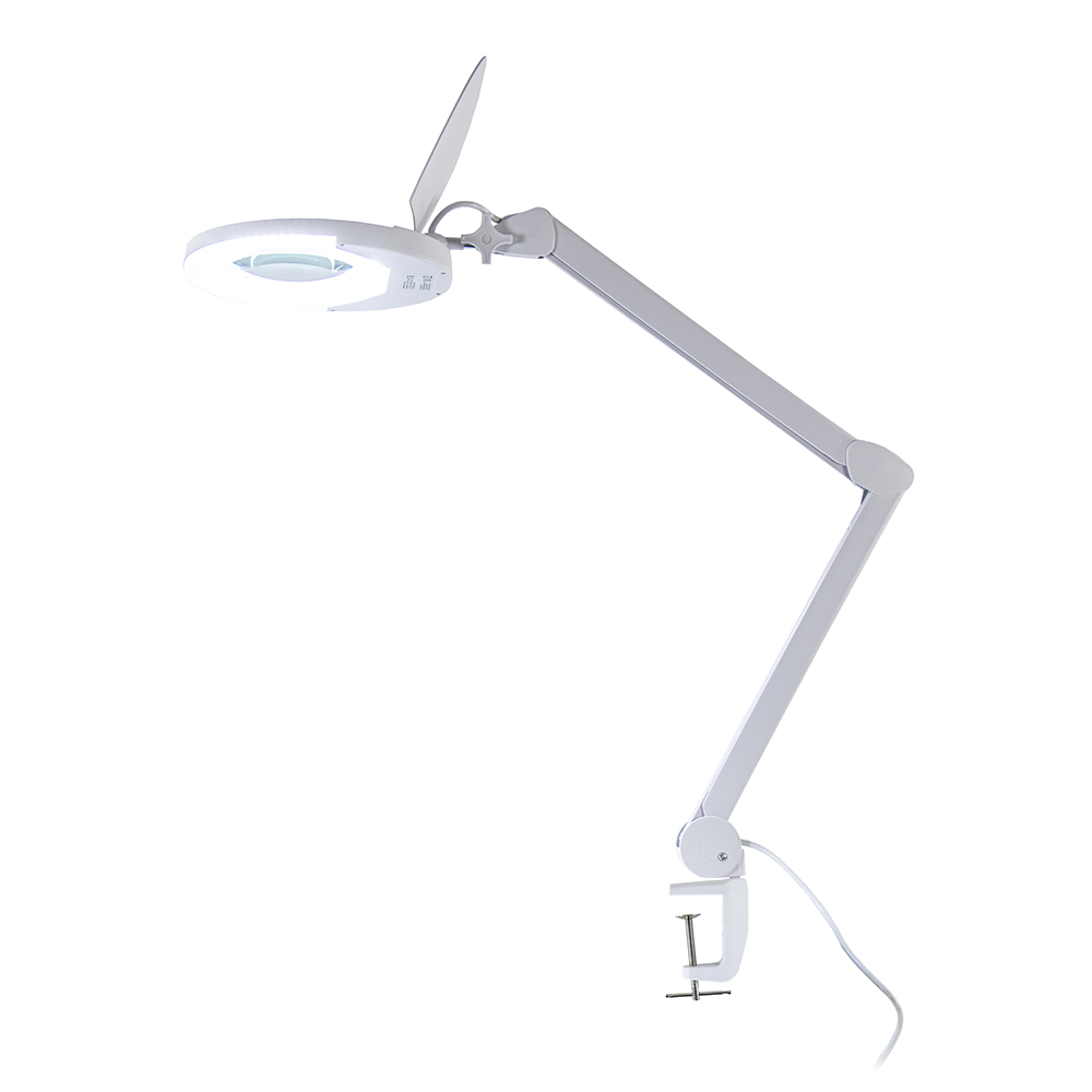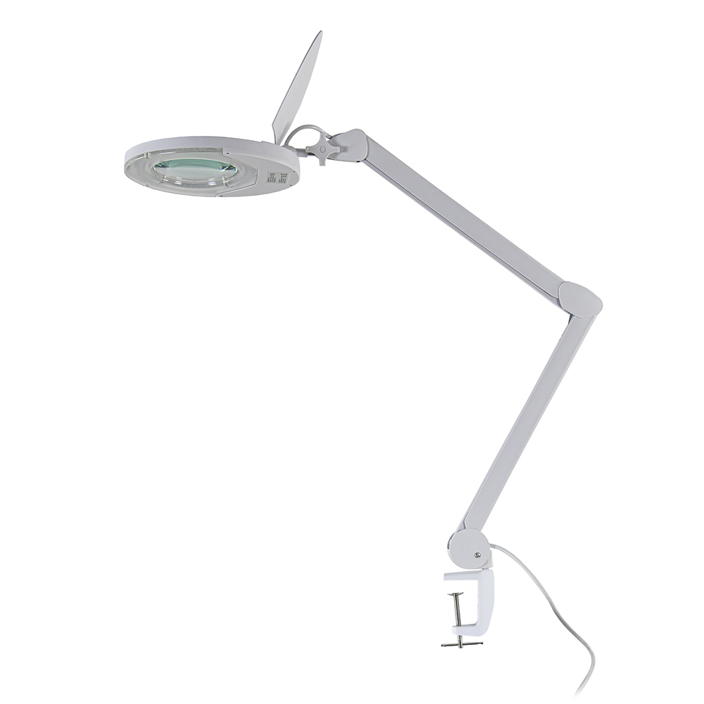 Deze moderne klemlamp is een ideaal hulpstuk voor de echte knutselaar. De klemlamp is voorzien van geïntegreerd LED en geeft met 900 lumen en 6500 Kelvin fijn werklicht. De kap is verder voorzien van een vergrootglas voor extra gemak. De klemlamp wordt gemakkelijk vastgezet aan het tafel- of bureaublad en is te draaien en te kantelen op diverse plekken. Zo kunt u in een handomdraai de perfecte stand bepalen. De witte LED klemlamp heeft een schakelaar bovenop de kap en een snoer met een lengte van 145 cm.