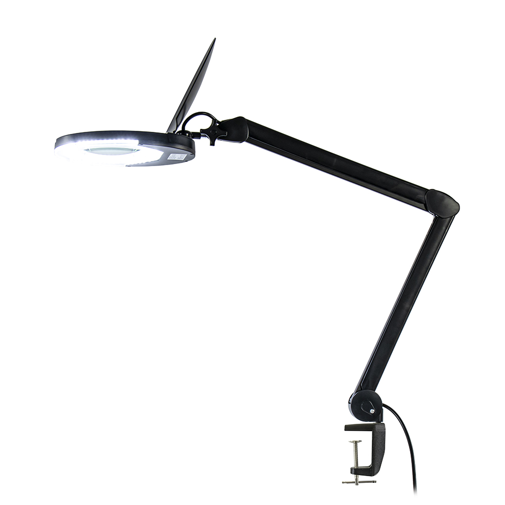 Deze moderne klemlamp is een ideaal hulpstuk voor de echte knutselaar. De klemlamp is voorzien van geïntegreerd LED en geeft met 900 lumen en 6500 Kelvin fijn werklicht. De kap is verder voorzien van een vergrootglas voor extra gemak. De klemlamp wordt gemakkelijk vastgezet aan het tafel- of bureaublad en is te draaien en te kantelen op diverse plekken. Zo kunt u in een handomdraai de perfecte stand bepalen. De zwarte LED klemlamp heeft een schakelaar bovenop de kap en een snoer met een lengte van 145 cm.