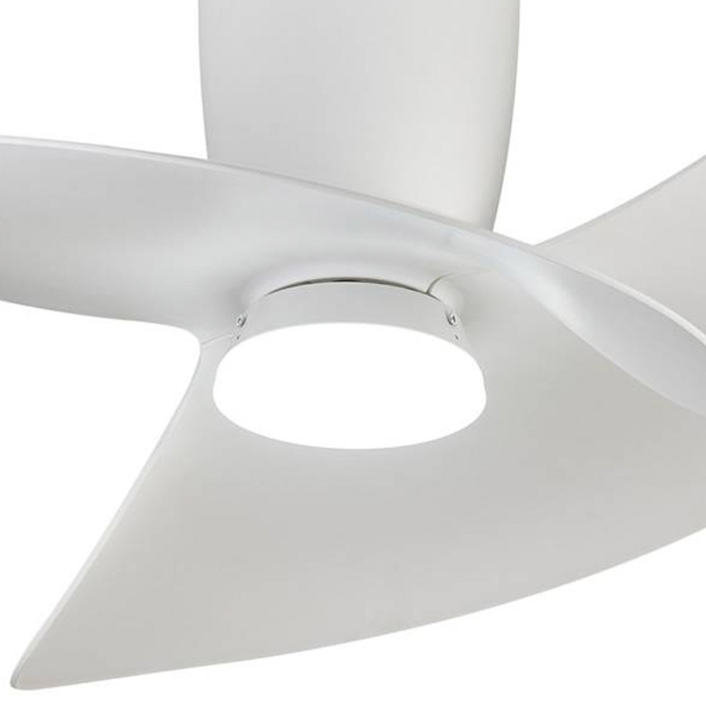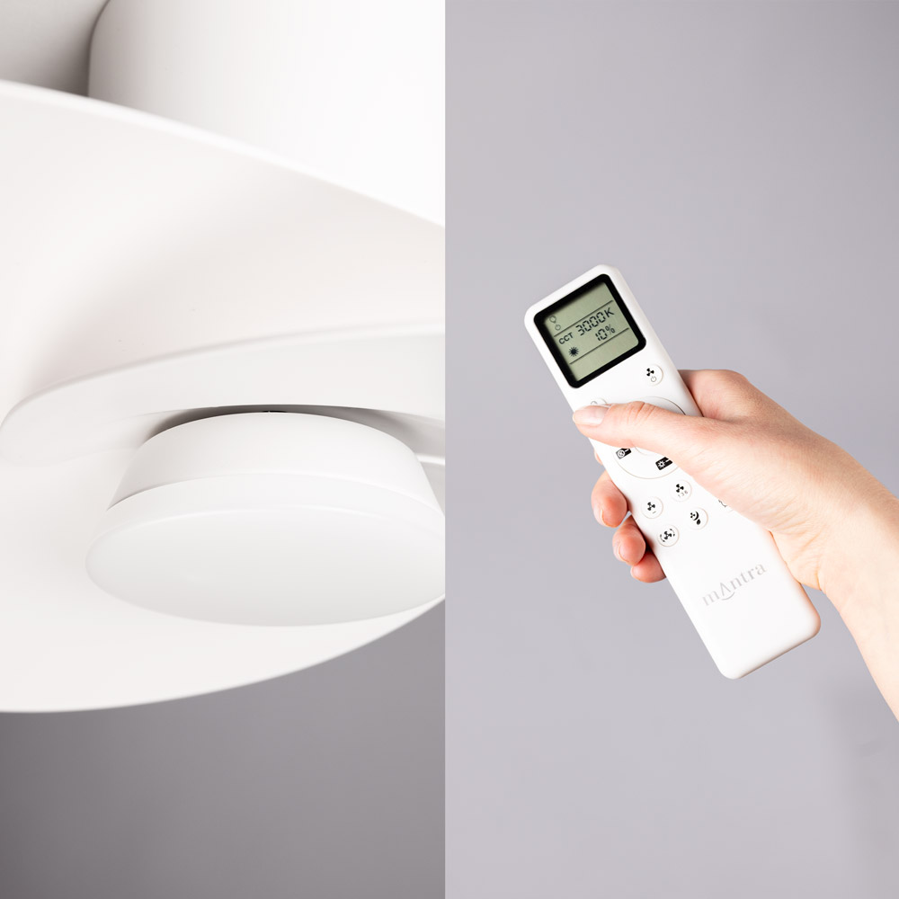 • Moderne plafondventilator met verlichting voor ruimtes tot 13 m² • Strak wit design met organische, luchtige uitstraling • Geïntegreerde 18W LED met instelbare lichtkleur van 3000K tot 5000K • Dimbaar en voorzien van 8 ventilatiestanden met afstandsbediening • Zomer- en winterfunctie voor comfort in elk seizoen
