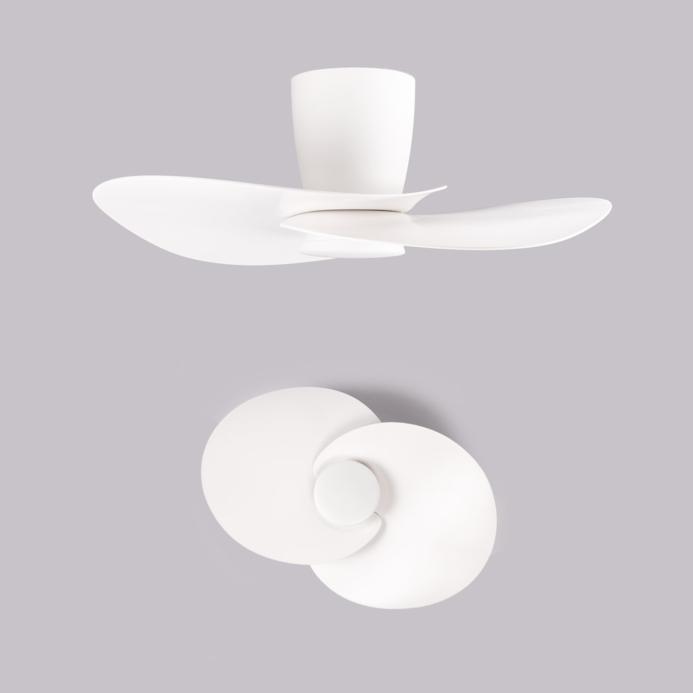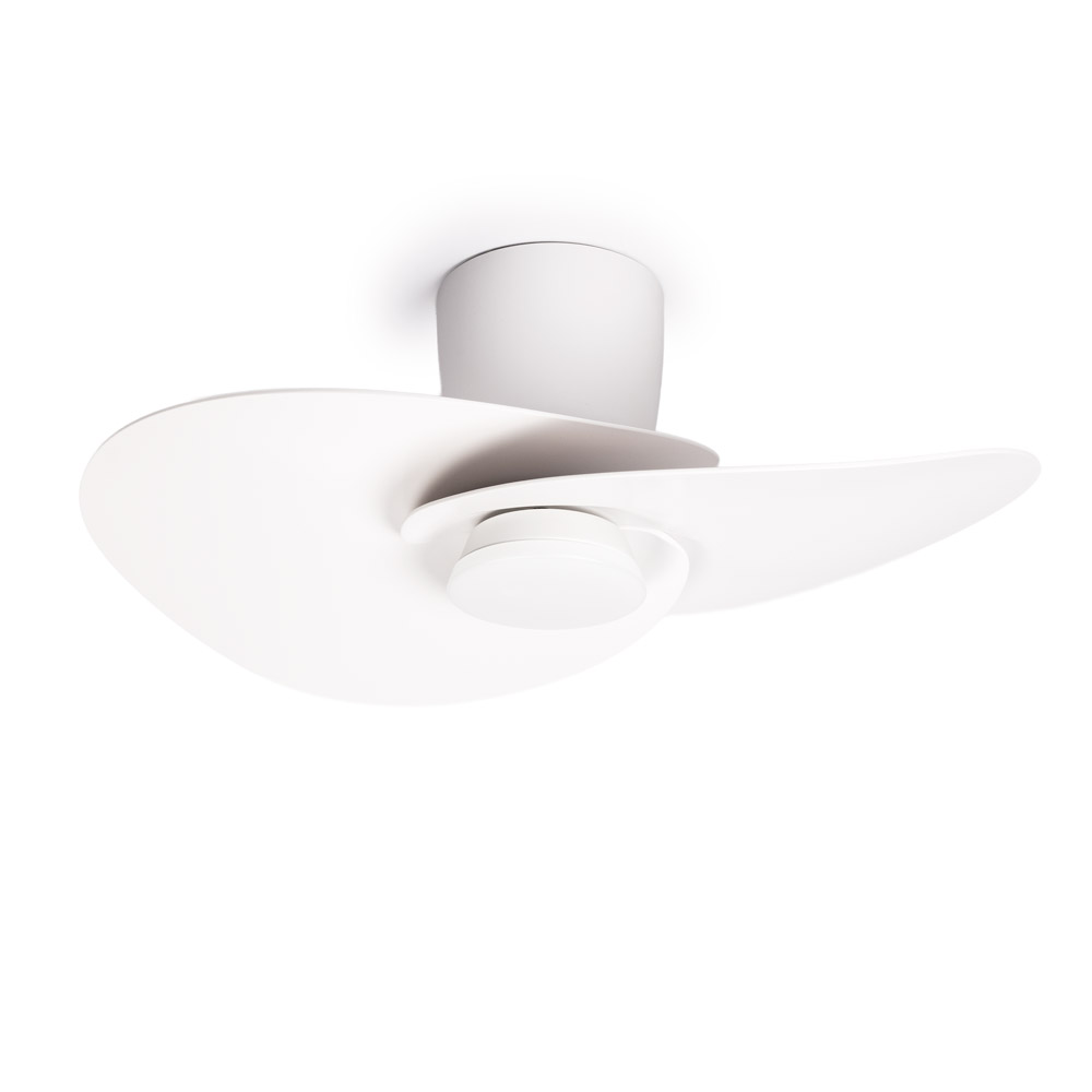 De Nenufar plafondventilator combineert verlichting en ventilatie in één modern plafondmodel. De frisse witte afwerking en het vloeiende ontwerp zorgen voor een rustige, eigentijdse uitstraling die mooi past in een slaapkamer, werkkamer of compacte woonkamer. Dankzij het platte ontwerp oogt deze ventilator strak aan het plafond, terwijl hij toch zorgt voor aangename luchtcirculatie en functioneel licht.