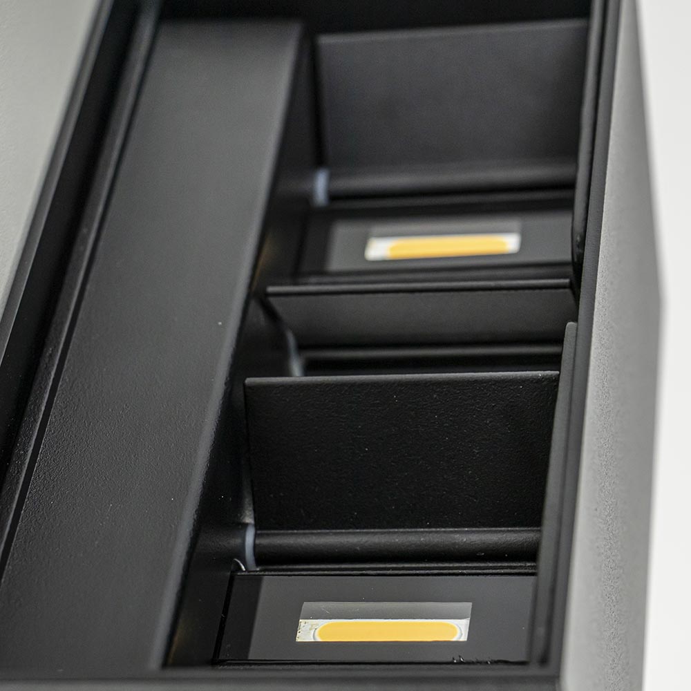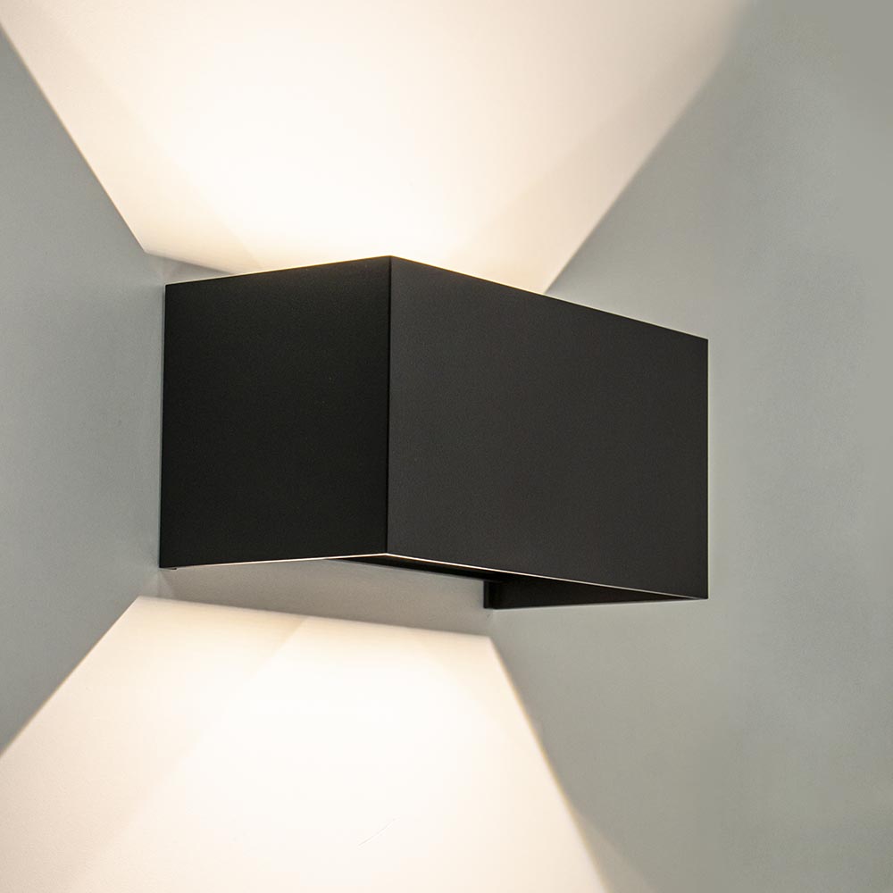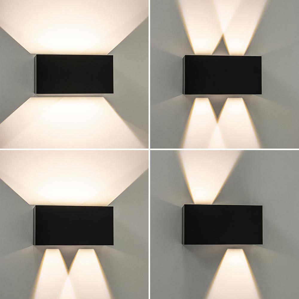 Een strak design met een groots effect. Met deze moderne wandlamp bepaald u namelijk zelf de lichtverspreiding. De wandlamp is voorzien van 4 LED lichtpunten die dmv klepjes zijn te stellen. Hoe verder de klepjes open staan hoe meer licht de lamp verspreid. Zo kunt u spelen met alle mogelijkheden en een mooi schouwspel aan licht creëren op de schutting, schuur of de woning zelf. De wandlamp is uitgevoerd in het zwart en is IP54 goedgekeurd.