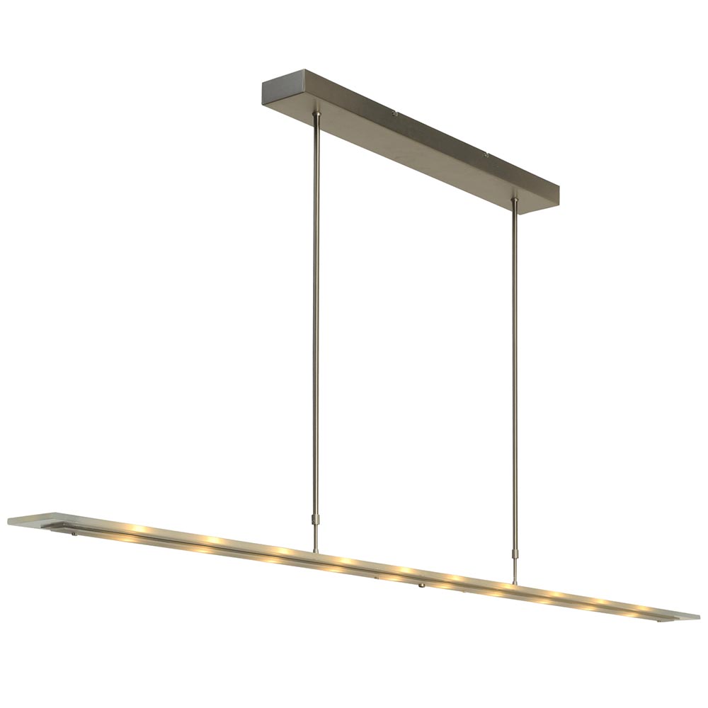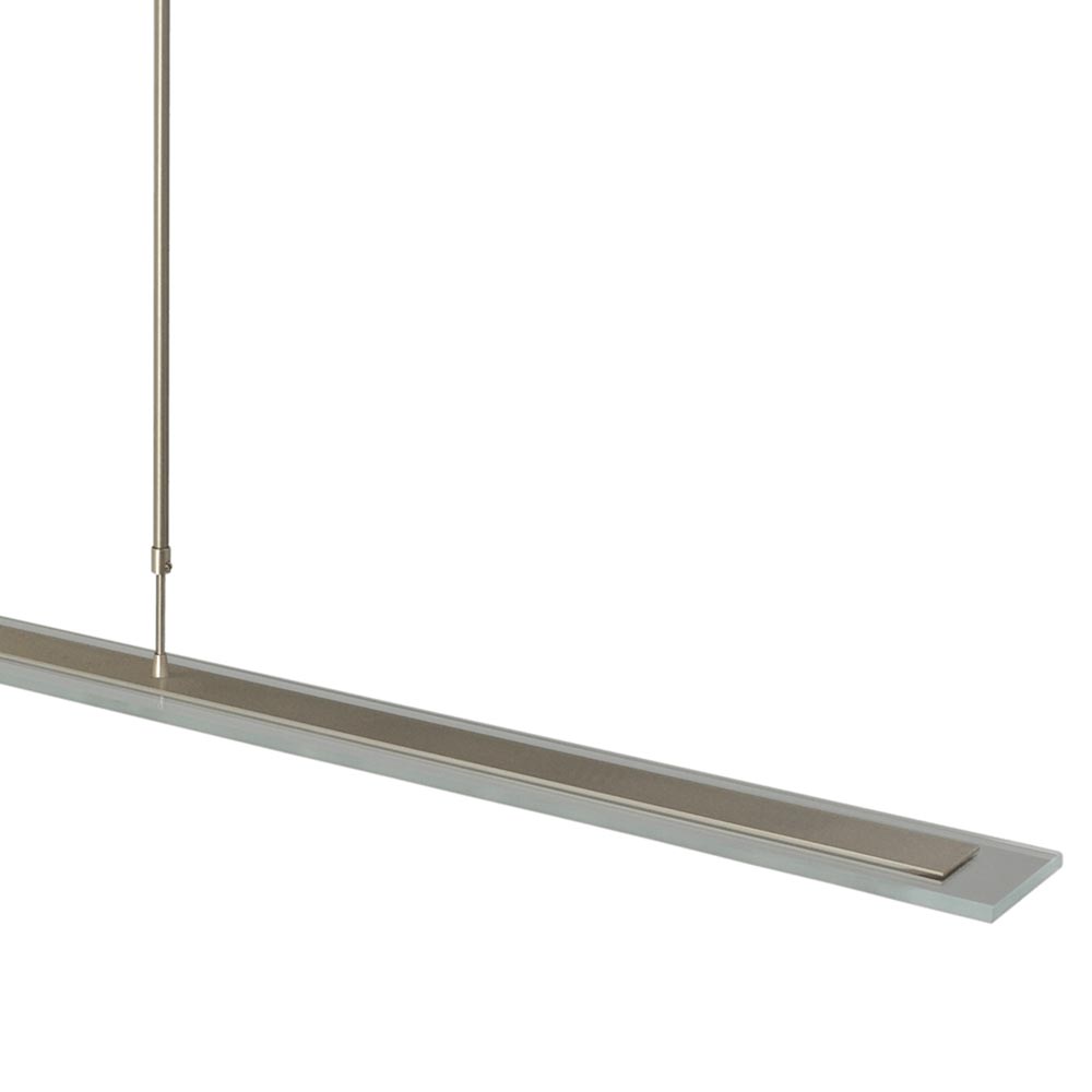 Een prachtige hanglamp met een hoog design gehalte. Deze moderne hanglamp is voorzien van LED met een dim to warm functie. Door middel van de pushdimmer op het armatuur creëert u gemakkelijk de gewenste lichtintensiteit en kleurtemperatuur tussen de 2200 en 2700 Kelvin. Met 5040 lumen geeft de luxe hanglamp een goede lichtopbrengst. Ideaal voor boven een eettafel of bureau. De lamp is naast de eetkamer dan ook prima geschikt voor een kantoorruimte. De langwerpige lamp is uitgevoerd in het nikkel en voorzien van helder glas. Deze combinatie geeft de hanglamp echt een moderne en luxe uitstraling en maakt de lamp ook geschikt voor diverse woonstijlen. De hanglamp is verstelbaar in hoogte en heeft een minimale hoogte van 78 cm, en een maximale hoogte van 145 cm.