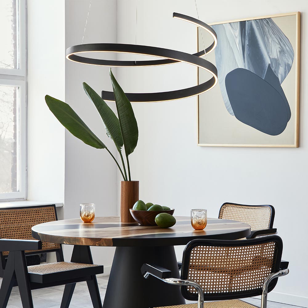 – afm: Ø75×200 cm – bevestiging: Ø18×4 cm – kap: Ø75×35 cm – zwart – geïntegreerd LED – 2000-4000 Kelvin – 5950 lumen – dim to warm – in hoogte verstelbaar