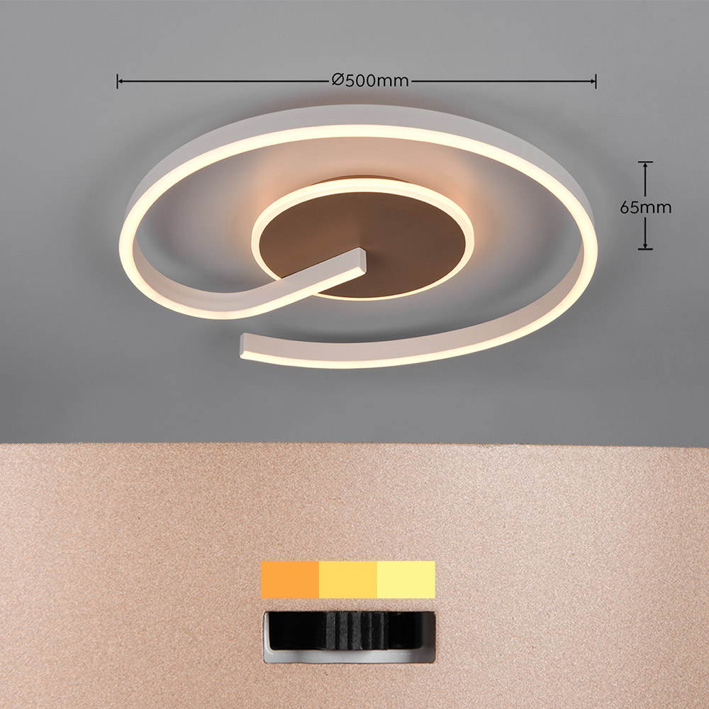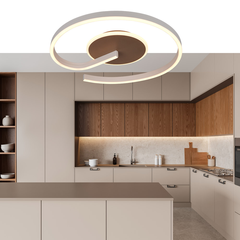 • Organisch, vloeiend design met moderne uitstraling • Verkrijgbaar in koffie en zwart • Lichtkleur instelbaar via DIP switch (2300K / 3000K / 4000K) • Dimbaar via wandschakelaar (Switch Dimmer) • Krachtige lichtopbrengst van 2600 lumen