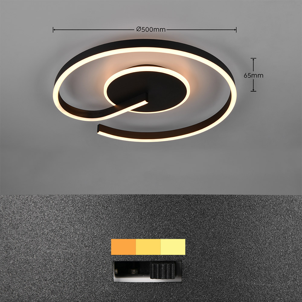 Calle plafondlamp LED – Ø50 cm – zwart – dimbaar – instelbare lichtkleur