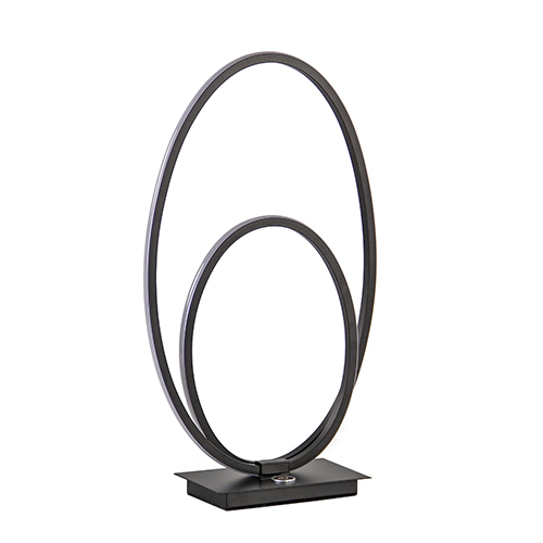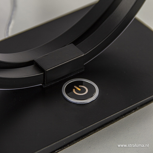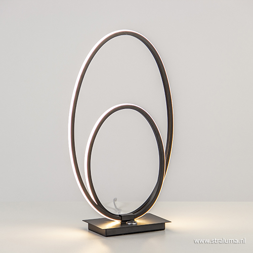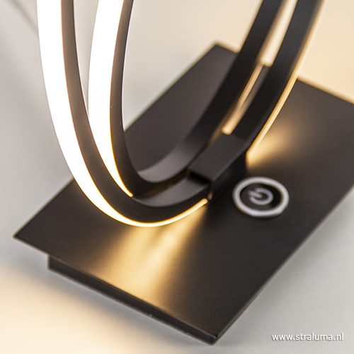 Een moderne LED tafellamp met touchdimmer. De mat zwarte tafellamp is op de voet voorzien van een touchknop die drie dimstanden kent. De bogen van de lamp zijn volledig voorzien van LED strips wat een mooie sfeervolle verlichting geeft en ook nog eens energiezuinig is. Een ideale sfeermaker met modern design!