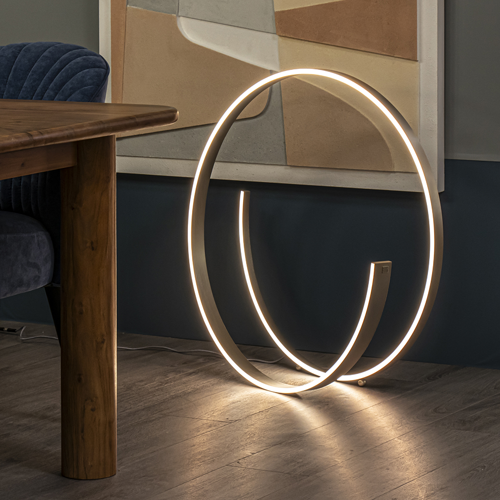 Deze prachtige design vloerlamp is een ware eye-catcher in het interieur. Het speelse en toch strakke design laat de lamp direct in het oog springen. De moderne vloerlamp is voorzien van geïntegreerd LED met dim to warm functie. Schakel snel en gemakkelijk van sfeer dmv de dimmer in het snoer. Ideaal voor in de zithoek of een donkere hoek. De moderne LED vloerlamp heeft een snoer van 265 cm waarbij de dimmer zich op 140 cm bevindt.