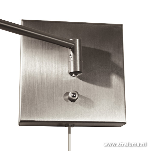 Prachtig afgewerkte moderne wandlamp uitgevoerd met LED verlichting. Ideaal voor naast een bank, fauteuil of naast het bed als leeslamp. De dimmer op het wandarmatuur zorgt ervoor dat u vanuit de luie stoel of bed de lamp in elke gewenste lichtsterkte kunt instellen. Deze LED leeslamp is zeer energiezuinig en verbruikt maar 4,5 watt. Door de stangen en scharnieren kunt u deze moderne bedlamp tot maximaal 62 cm uittrekken. De kop kunt u draaien en kantelen.
