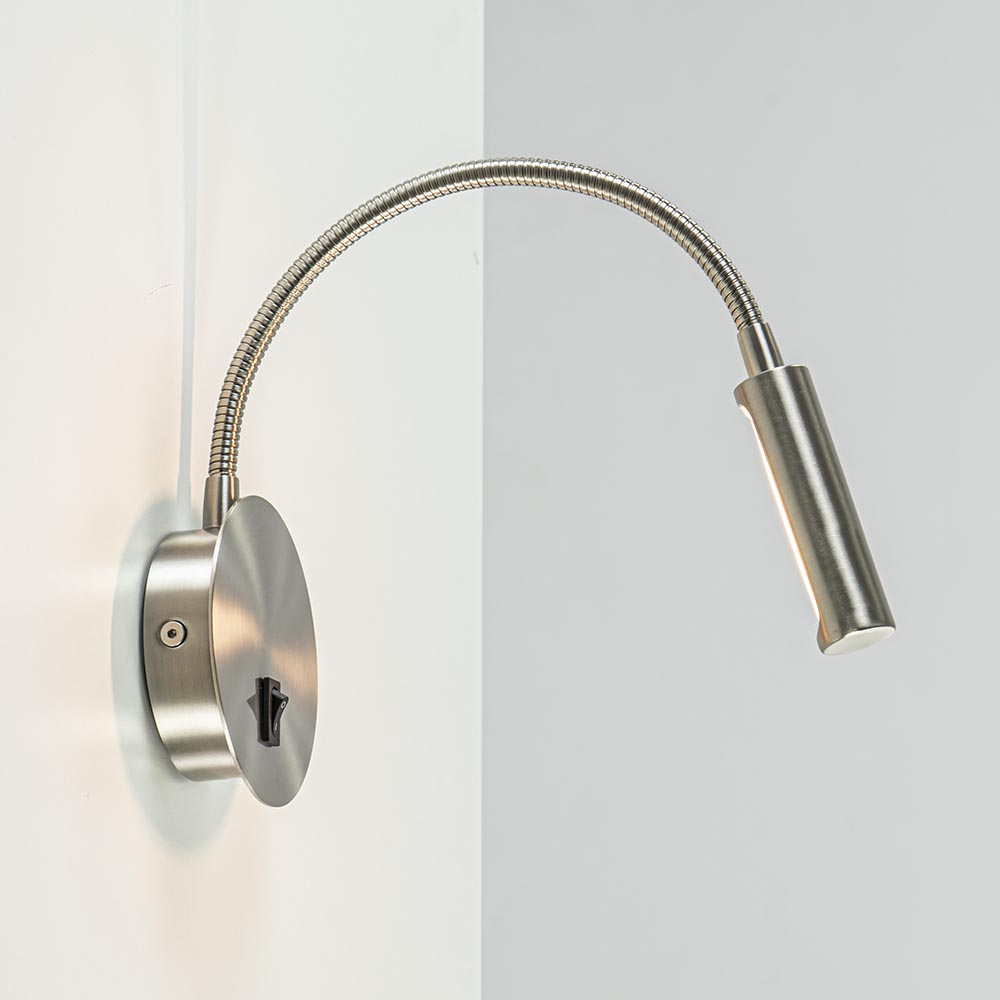 / Lampen / Bedlampjes / Moderne LED wandlamp nikkel met flexibele arm