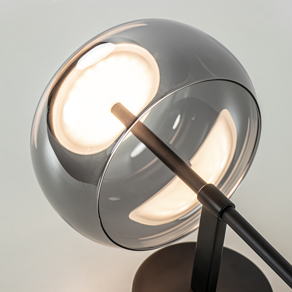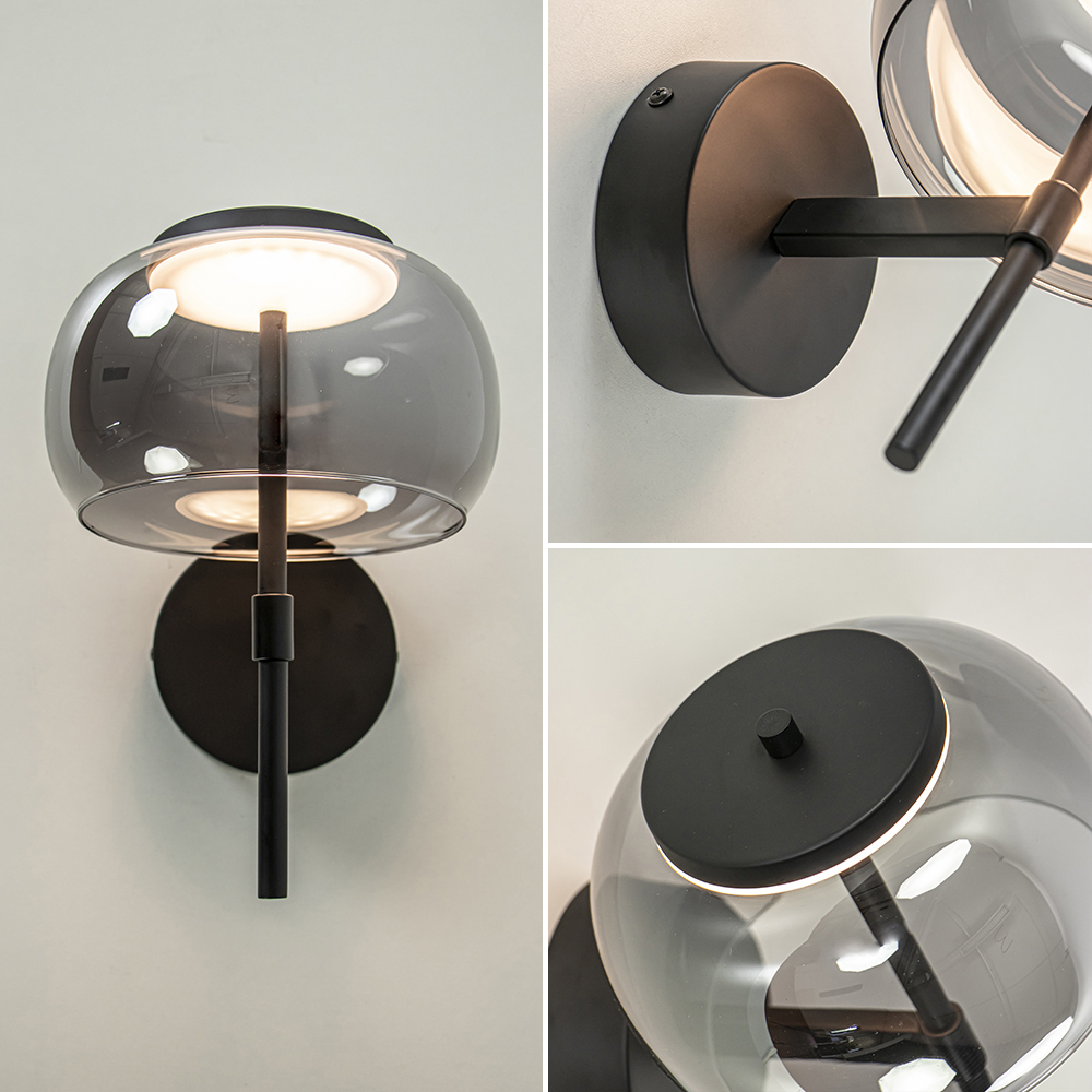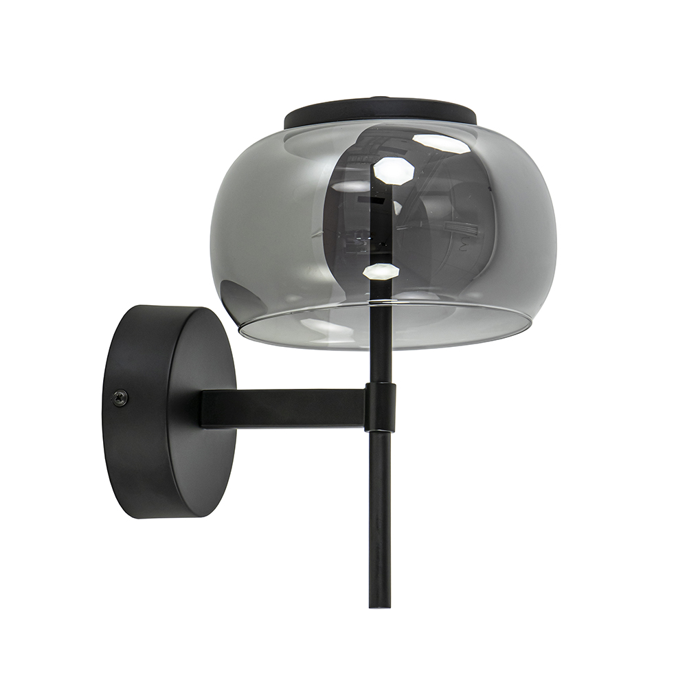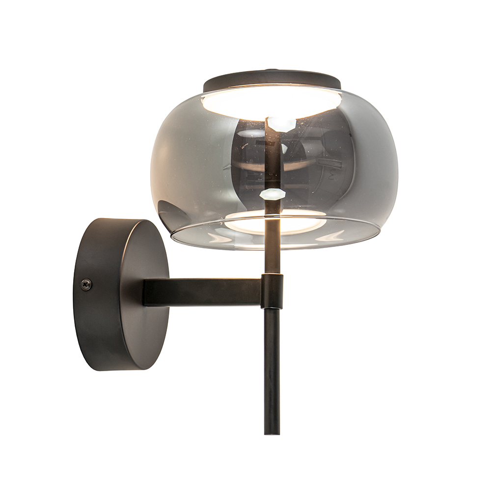 Deze kleine maar sfeervolle wandlamp is een fijne toevoeging aan het interieur. De wandlamp heeft een zwart armatuur dat is gecombineerd met een smoke glazen kap. Deze combinatie geeft de wandlamp een chique luxe uitstraling die mooi is toe te passen in diverse woonstijlen. De kap is van binnen voorzien van geïntegreerd LED welke met 2700 Kelvin een warm witte verlichting geeft. De moderne zwarte wandlamp is dimbaar middels een externe dimmer(exclusief) en is niet voorzien van een snoer.