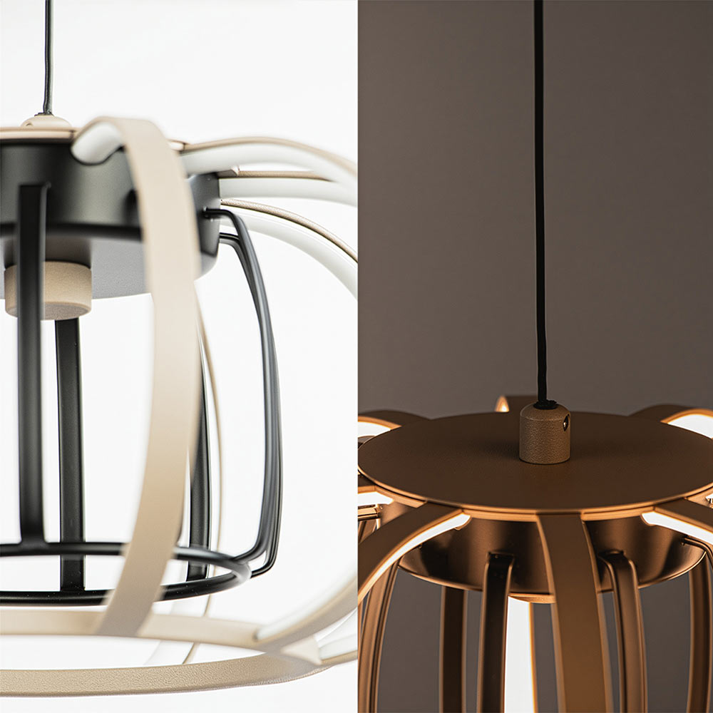 De Salo hanglamp is een moderne blikvanger met een luchtig en speels lijnenspel. Het metalen frame in twee kleuren geeft de lamp een eigentijdse uitstraling die prachtig tot zijn recht komt boven een ronde eettafel, in de hal of als sfeermaker in de woonkamer.