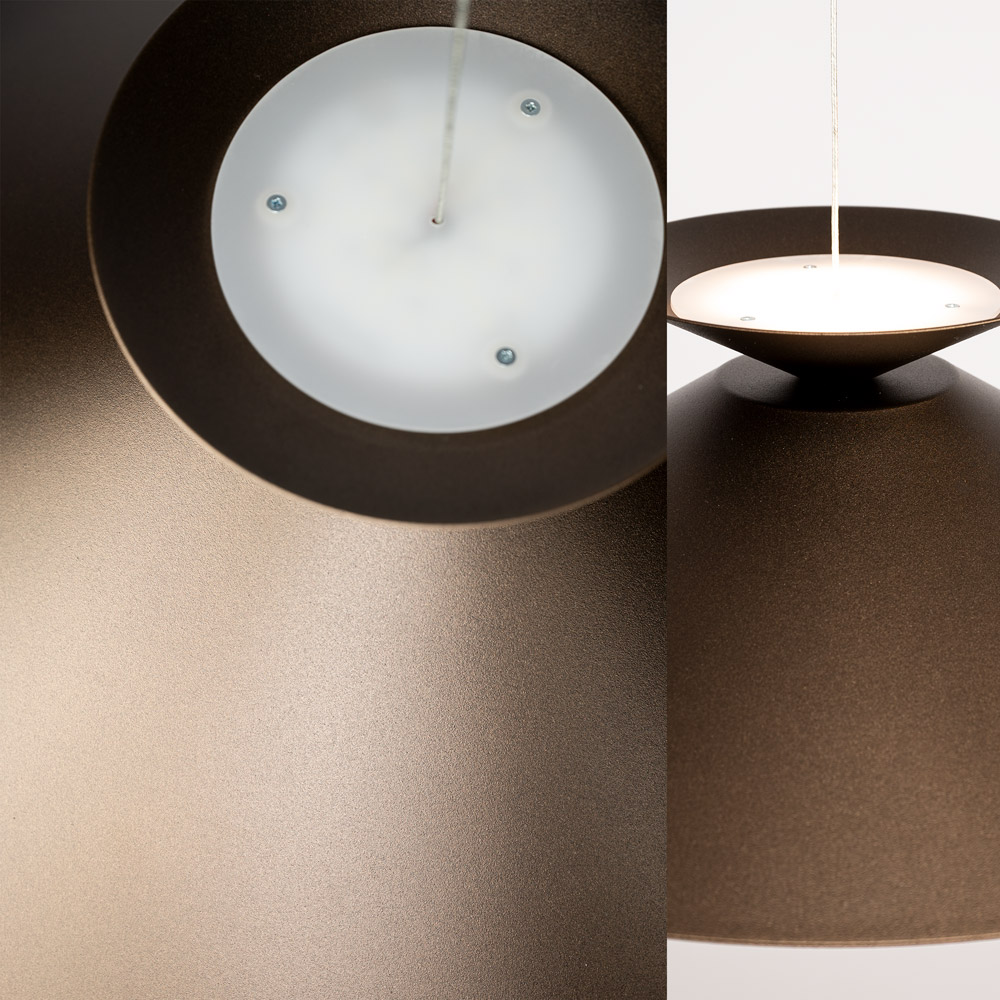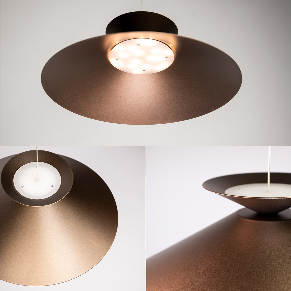 Homepagina / Moderne schotel hanglamp met brede kap in cacao